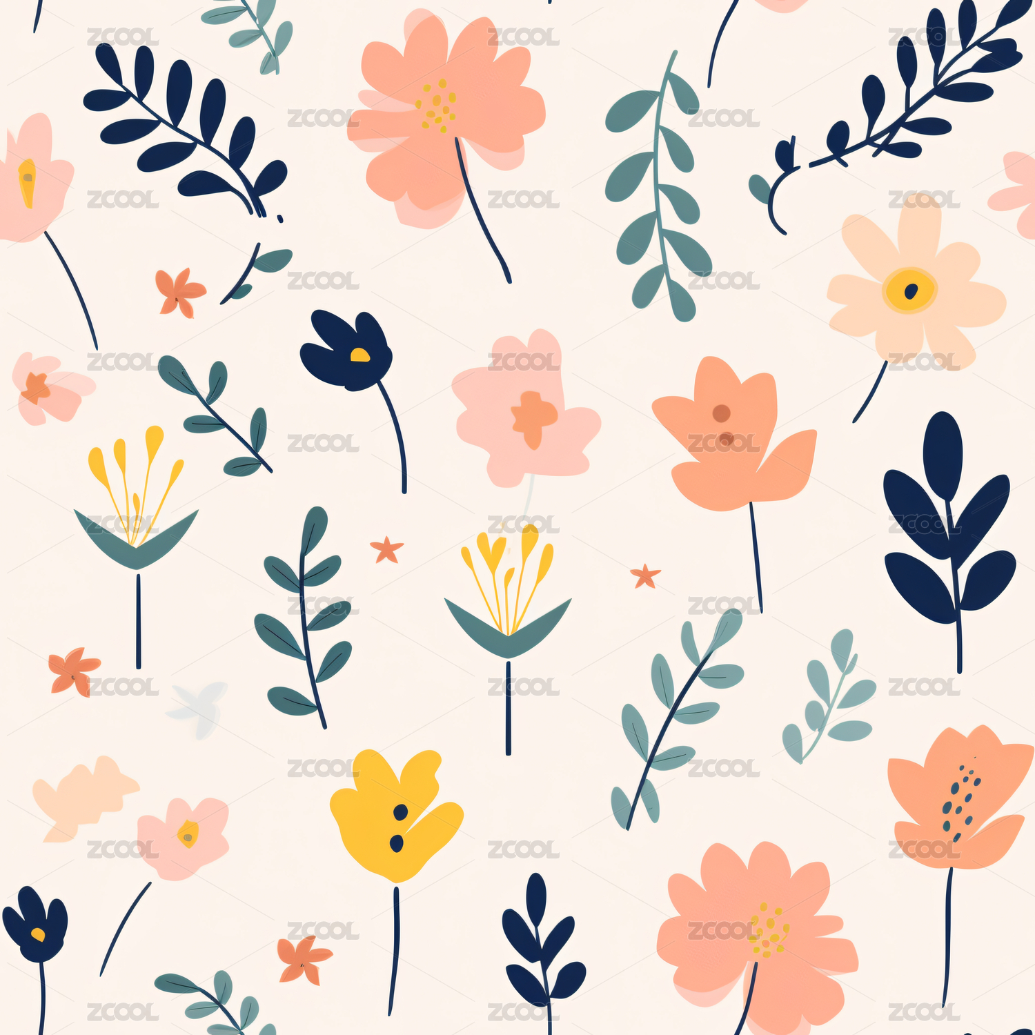 花朵叶子可爱图案设计