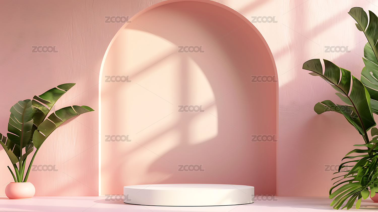 无人,电子商务,AI数字艺术,三维图形,产品展台,背景,几何形状,展览,植物,促销