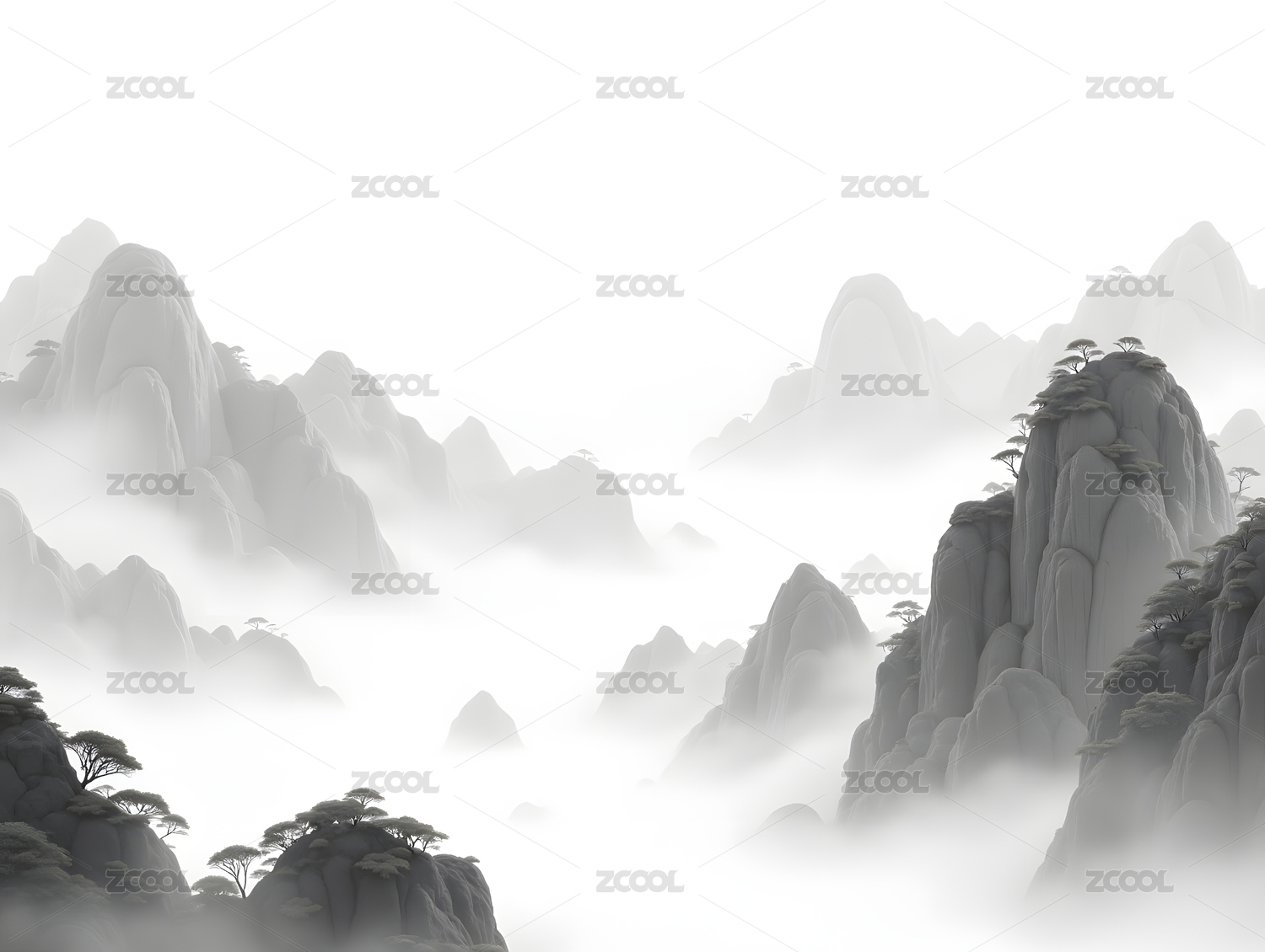 山清水秀的中国传统雾霭山水背景 诗情画意
