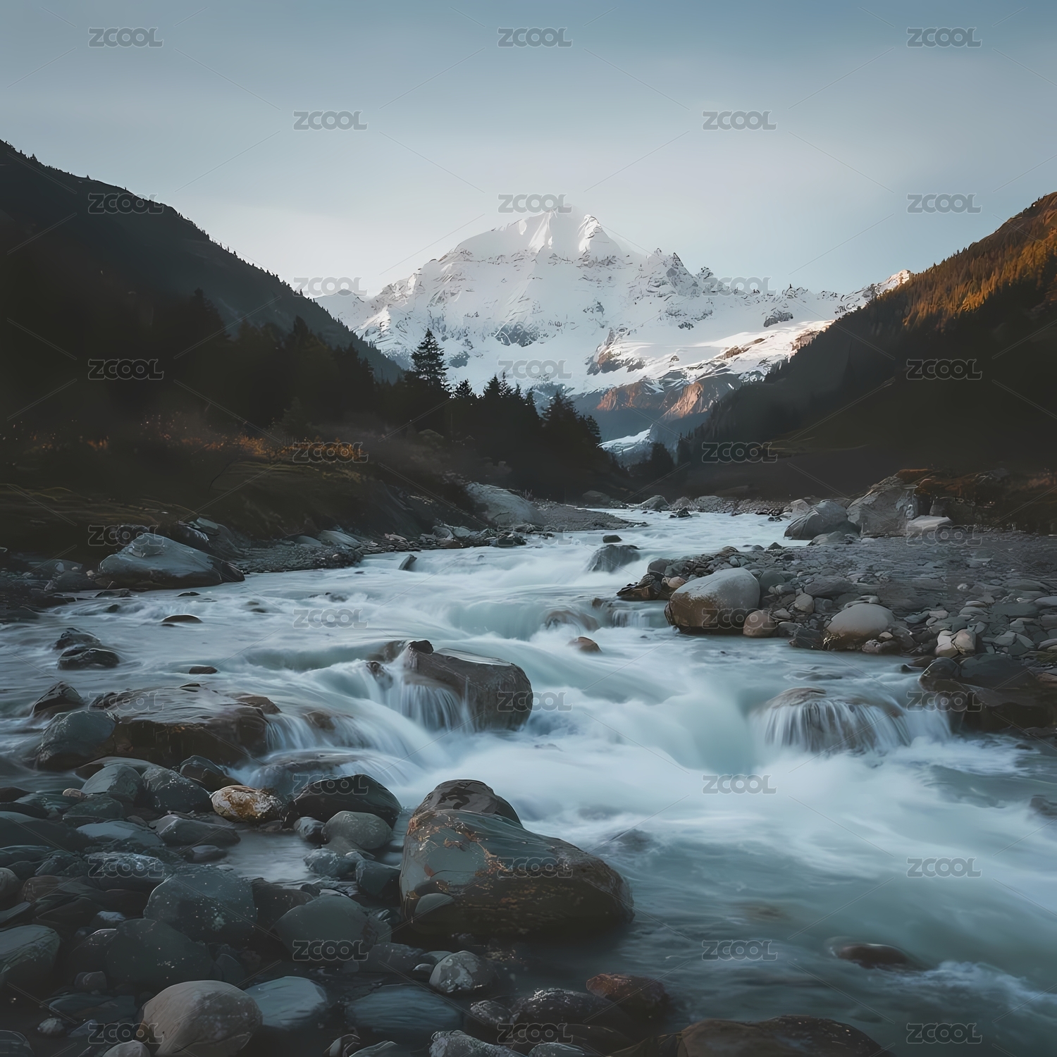 雪山脚下湍急的河流