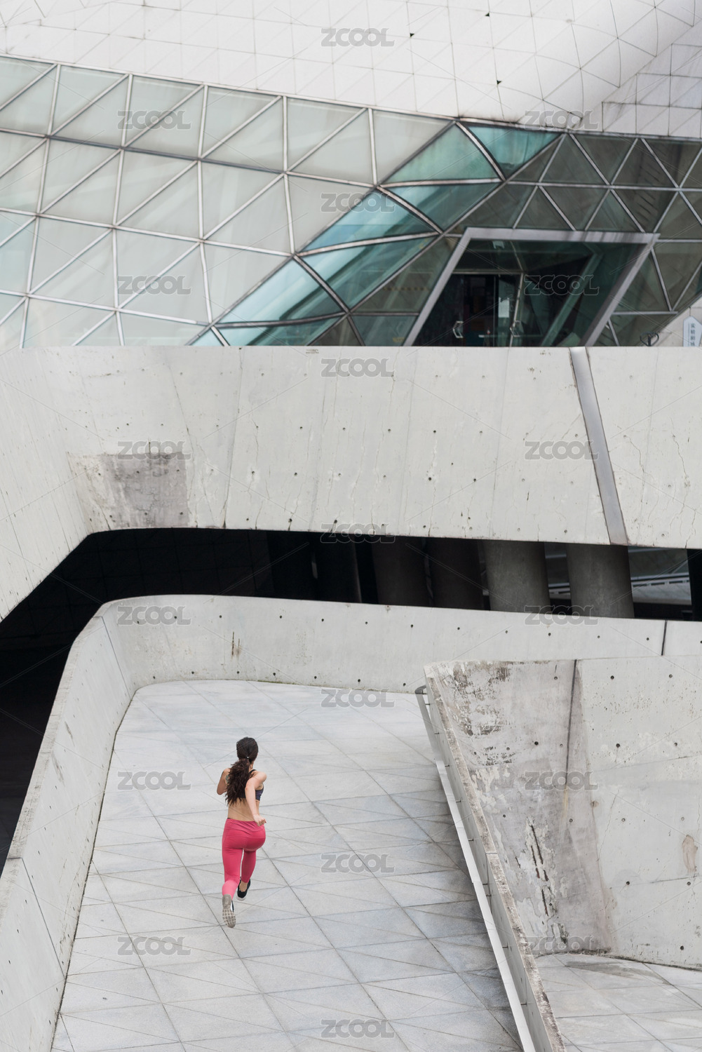 亚裔女性在户外跑步