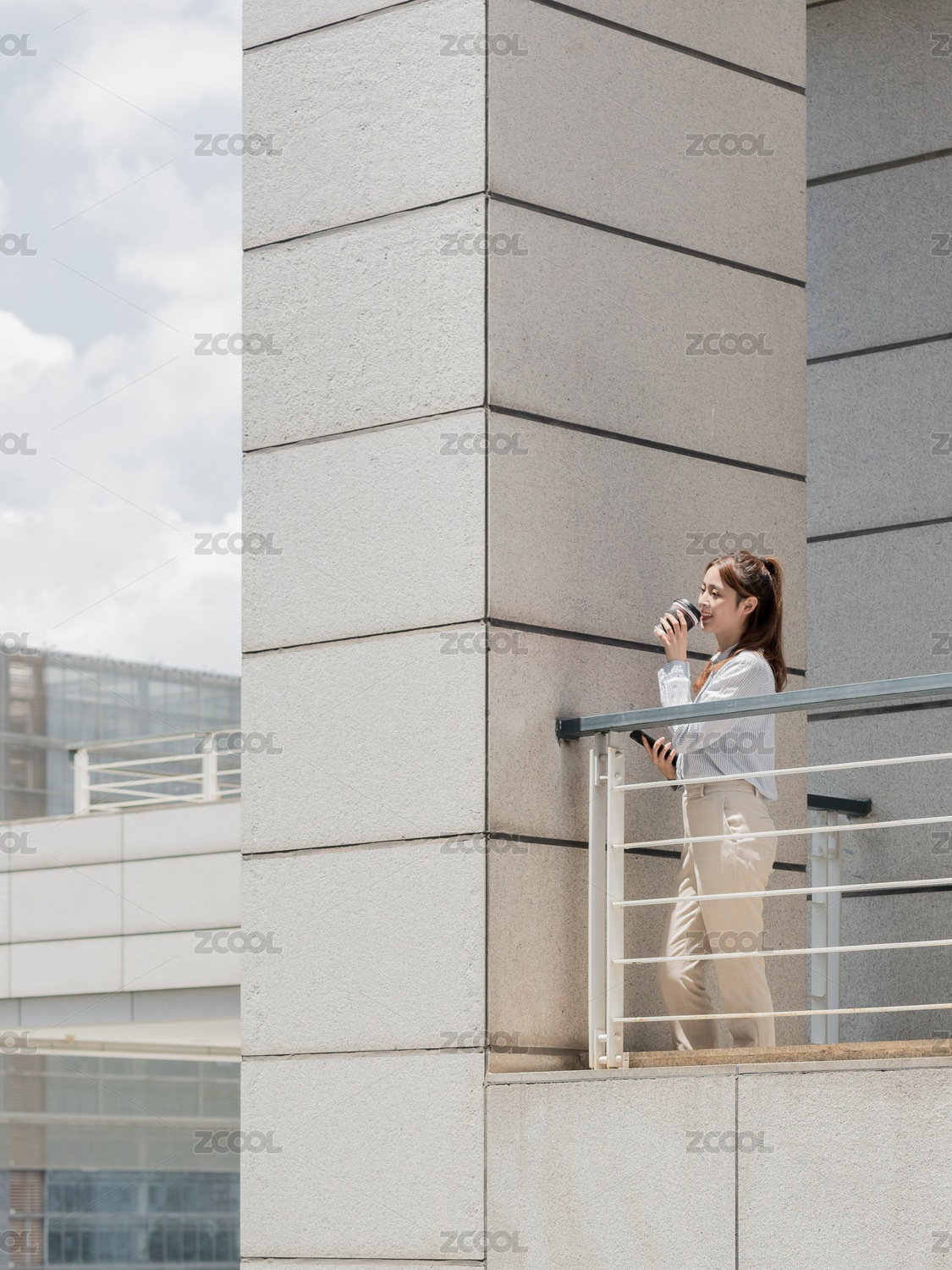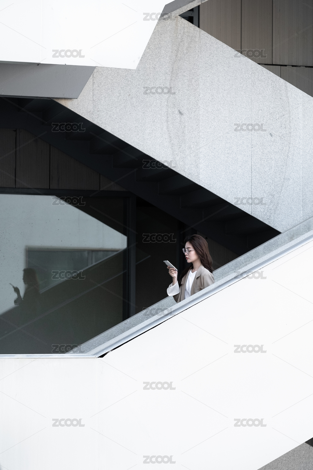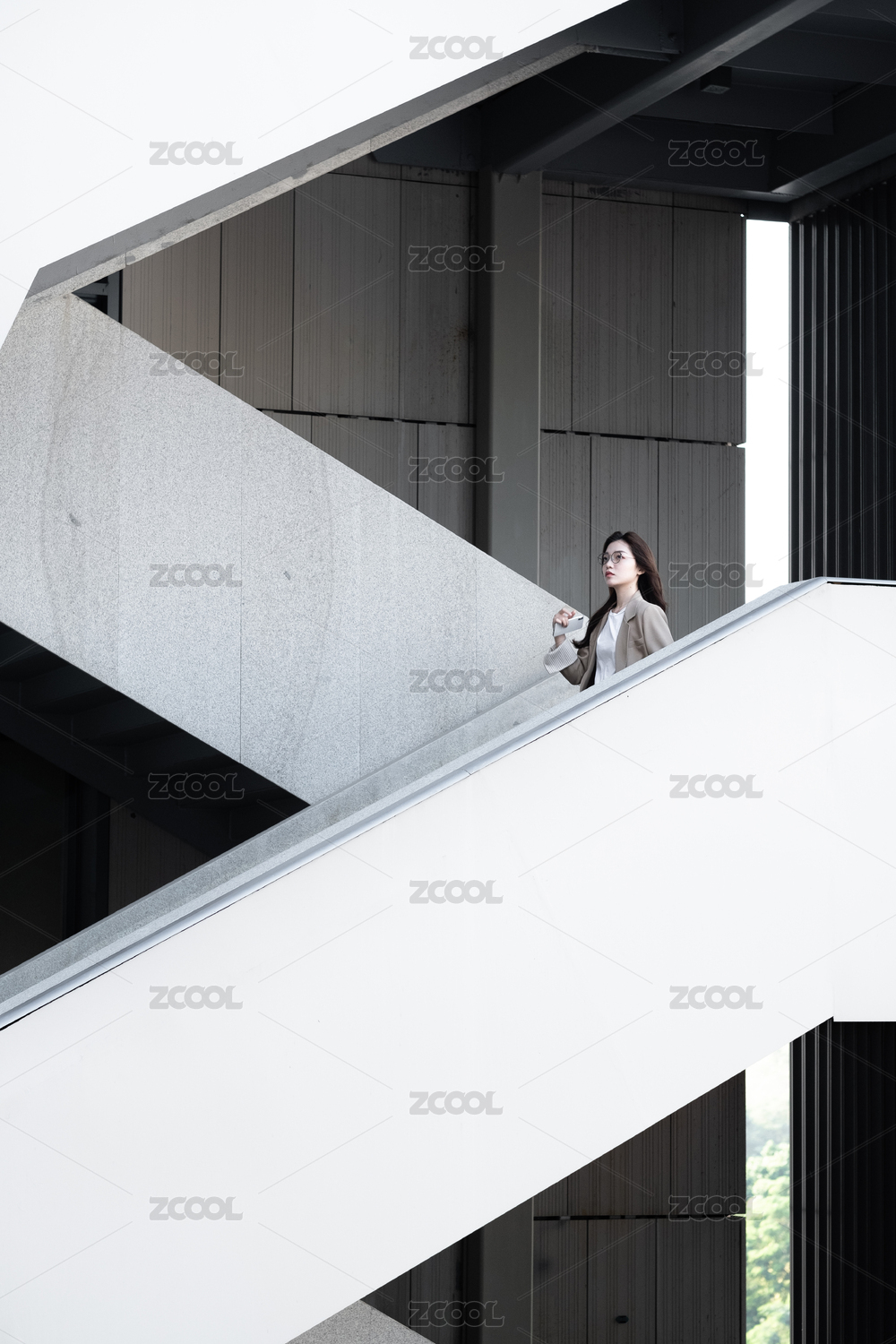 年轻女白领在楼梯上