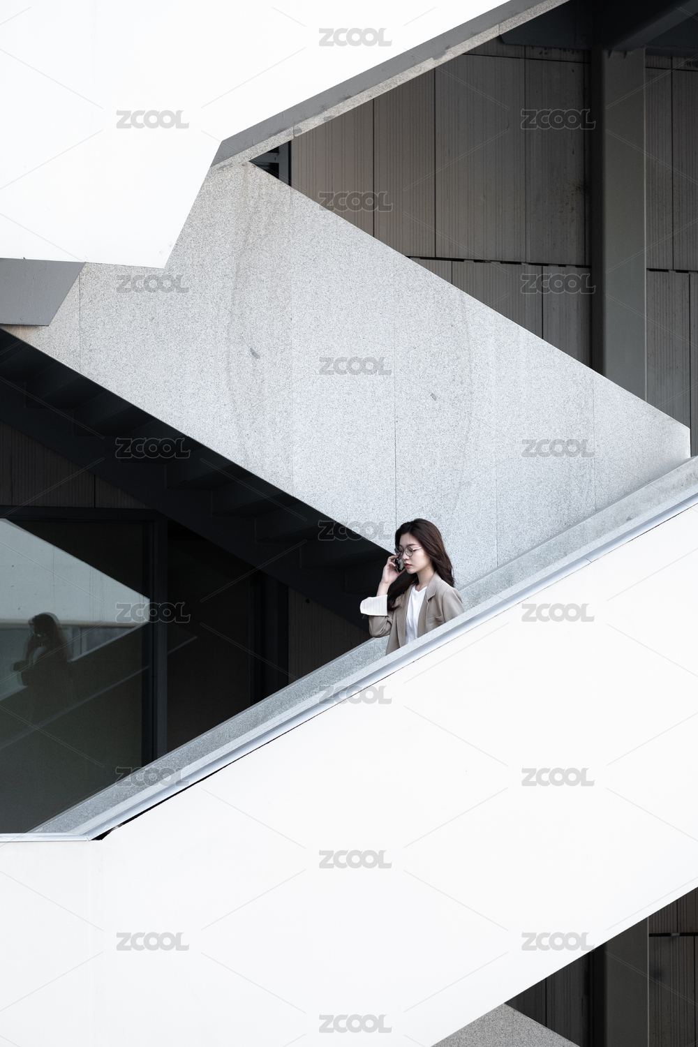 年轻女白领在楼梯上打电话