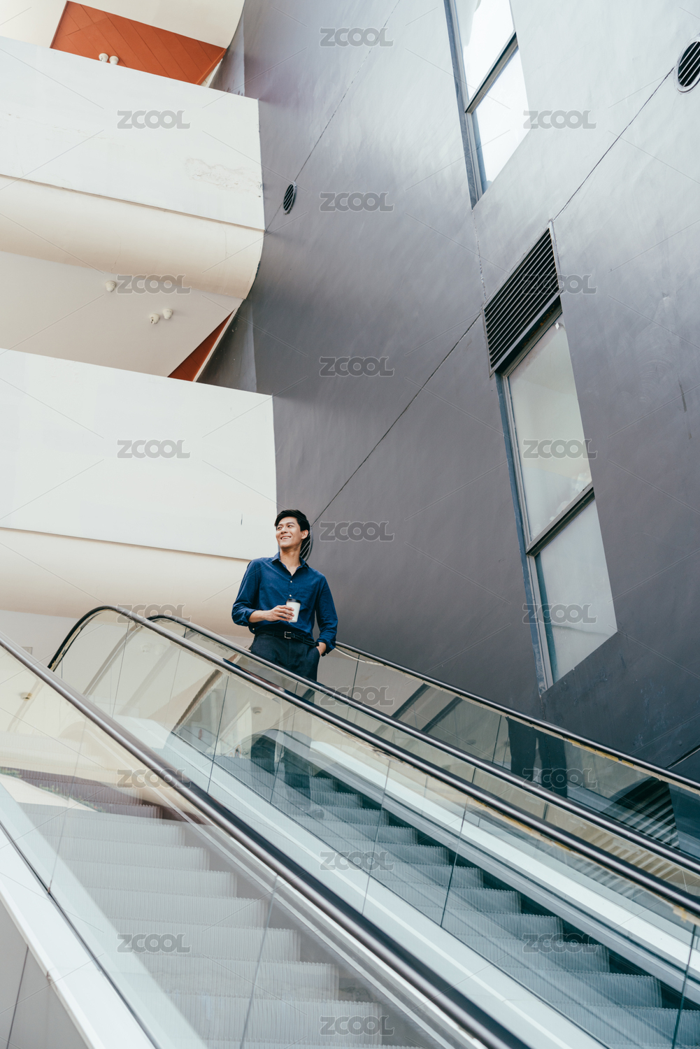 亚洲商业男士乘坐扶手电梯
