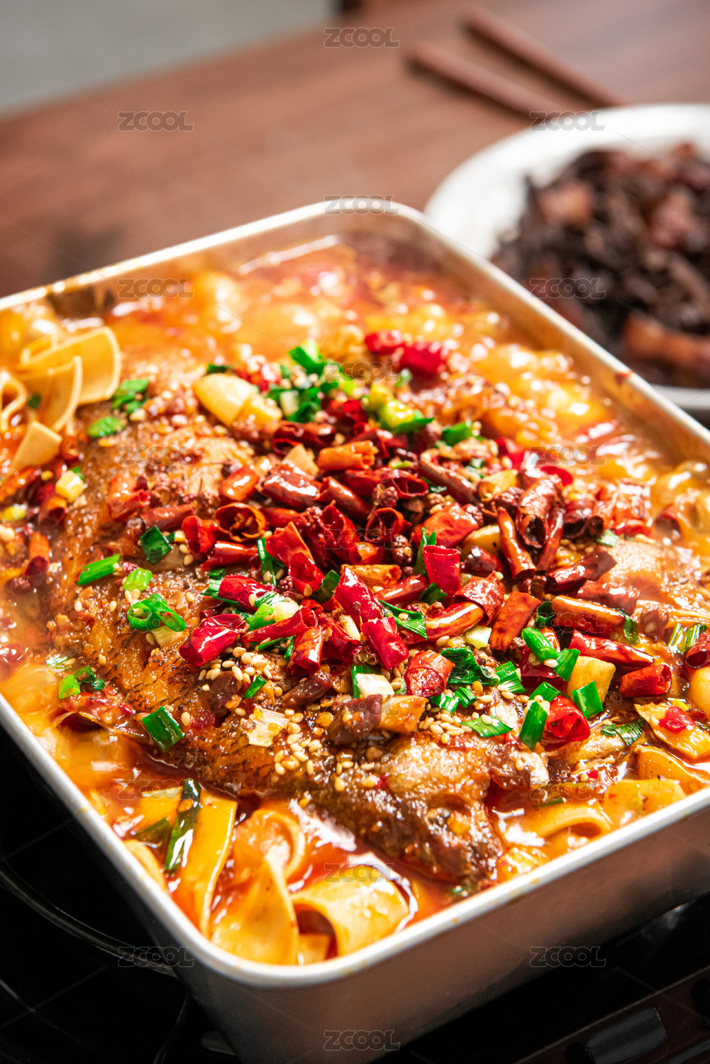 托盘里的麻辣烤鱼