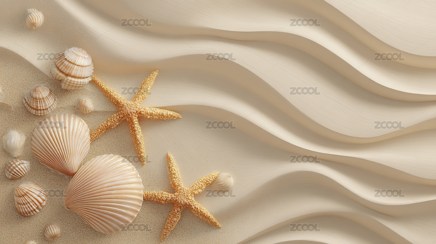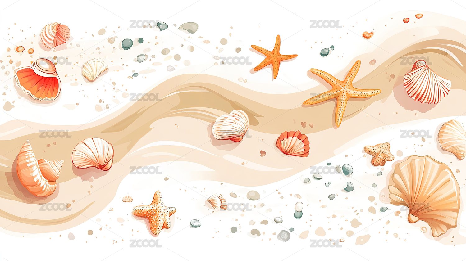 沙滩贝壳与海星的静谧场景
