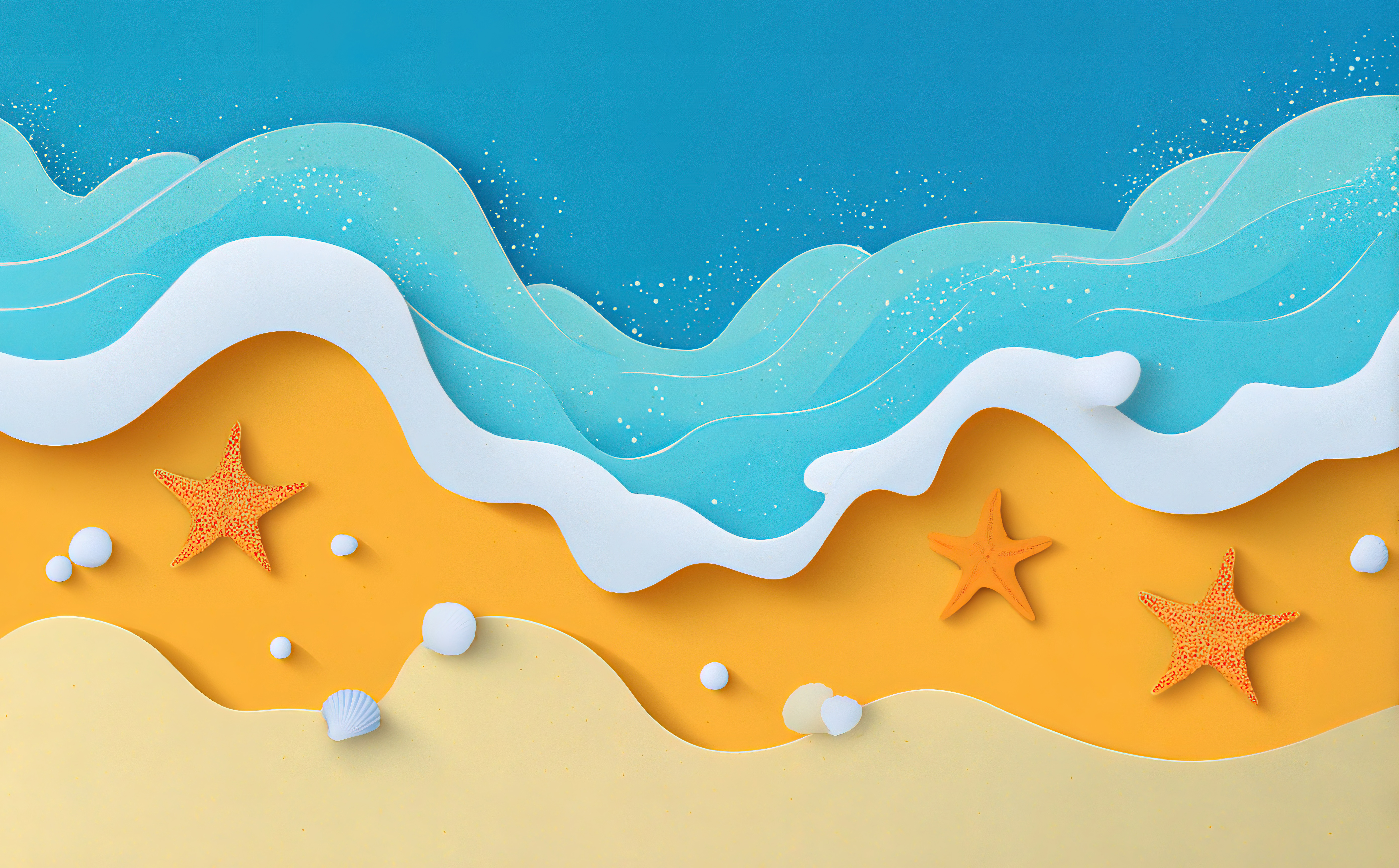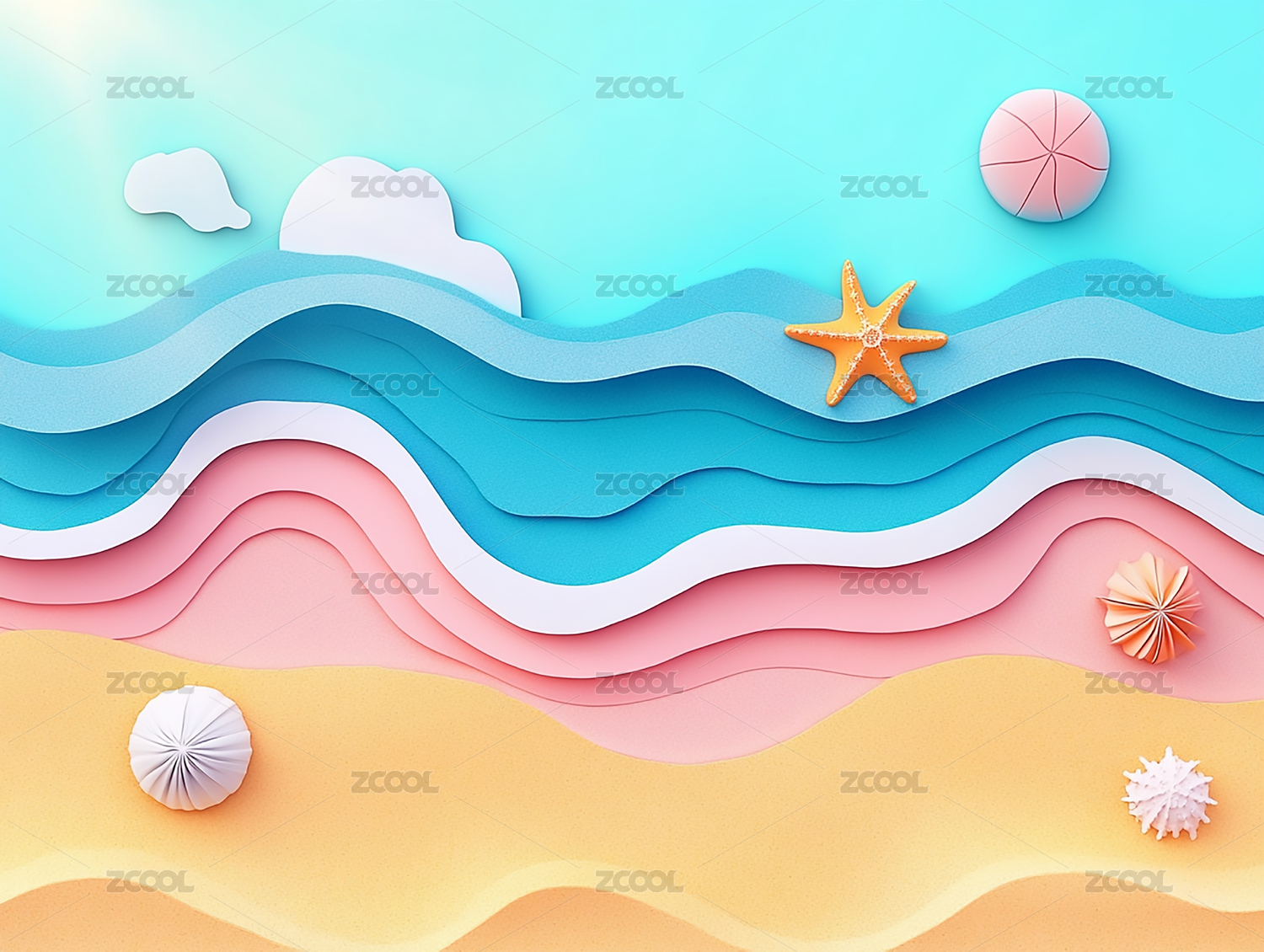 纸艺风格的海滩与海浪