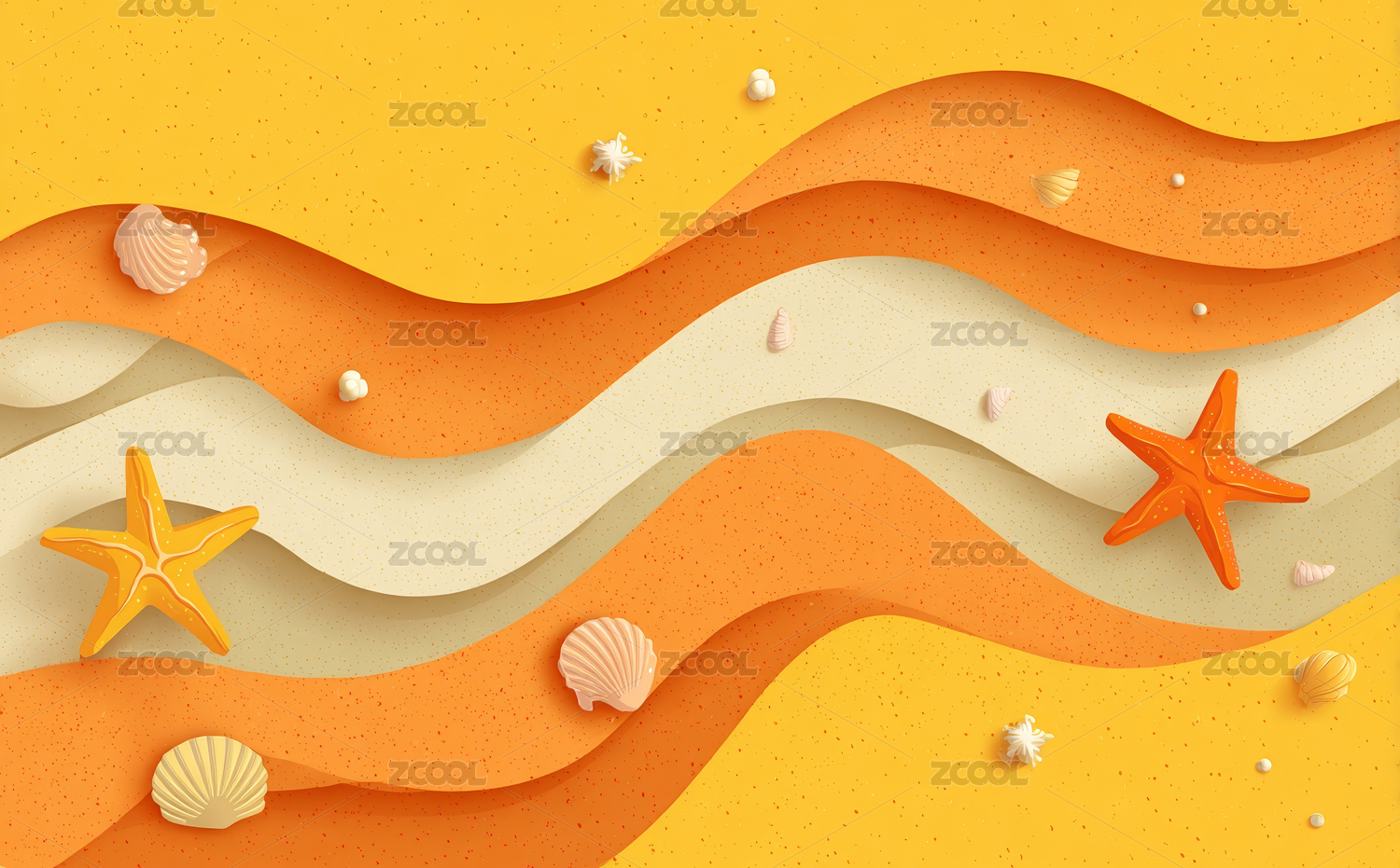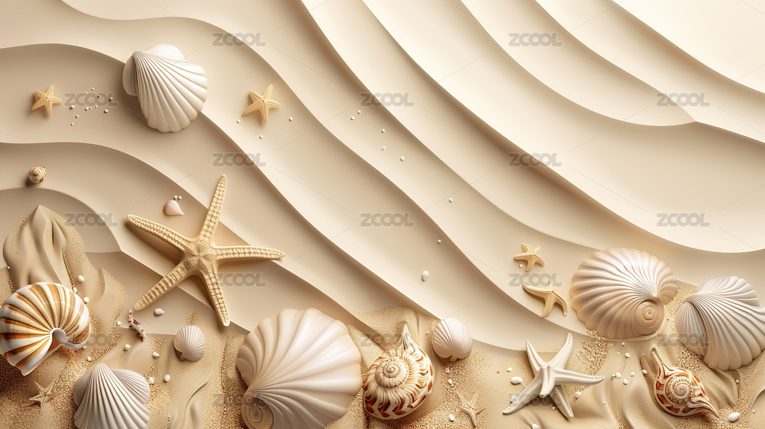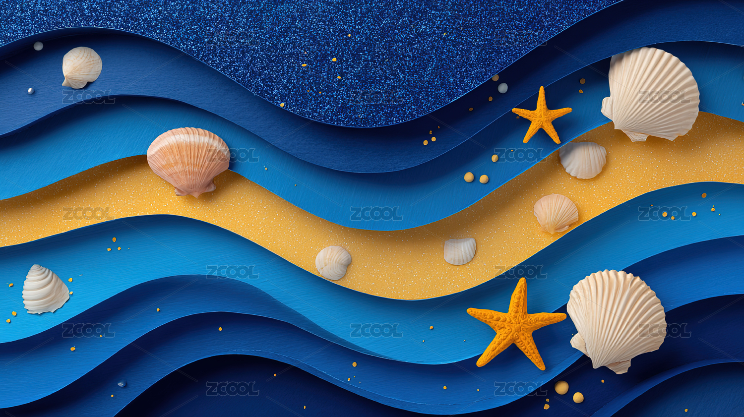 海洋波浪与沙滩贝壳的立体艺术