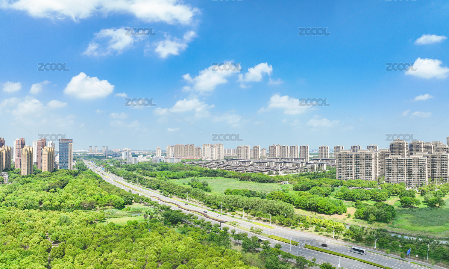 现代城市居民楼生态环境城市公园