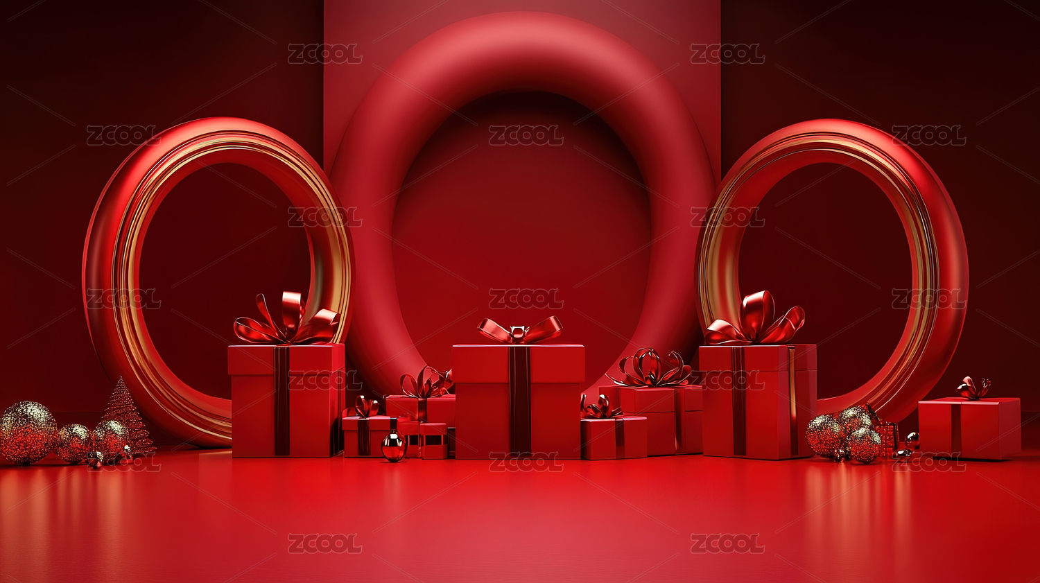 简单,红色,春节,节日,背景,光,电商展台,产品展台
