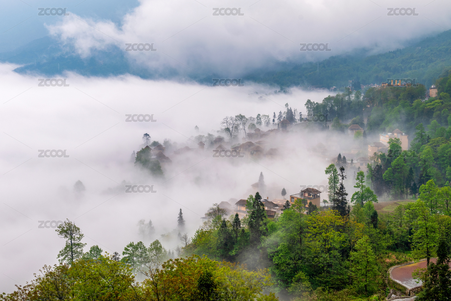 山寨,晨雾,村落,村庄,民居,多依树,元阳,梯田,山,云海