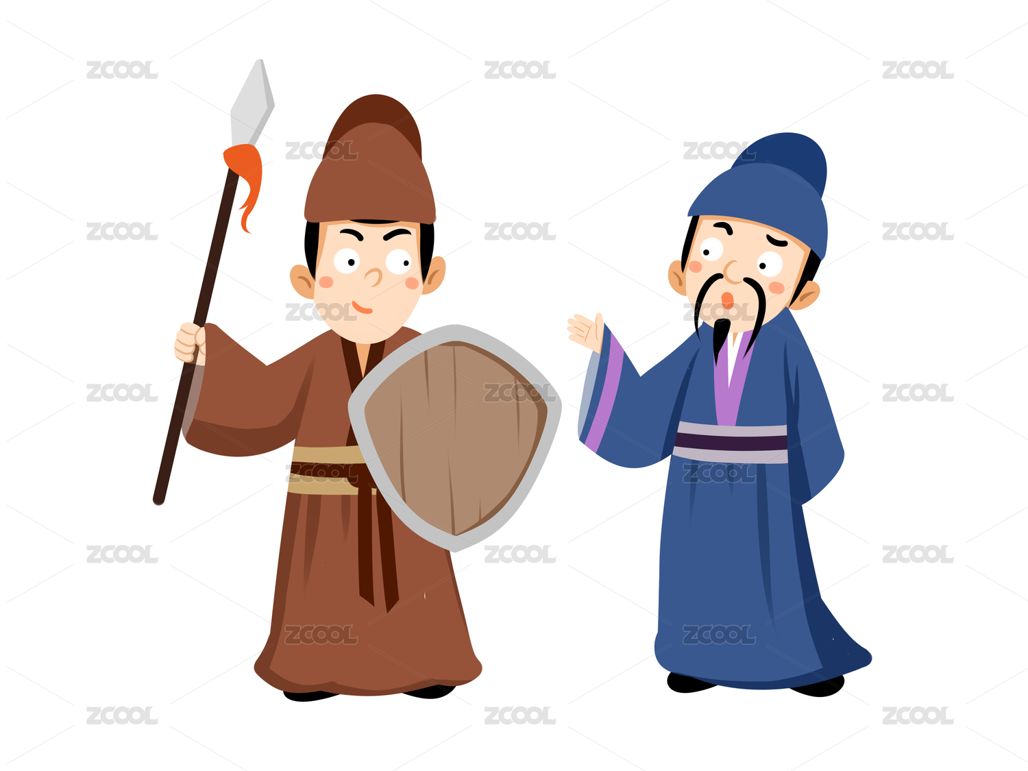 成语故事自相矛盾两位古装男士手拿矛和盾