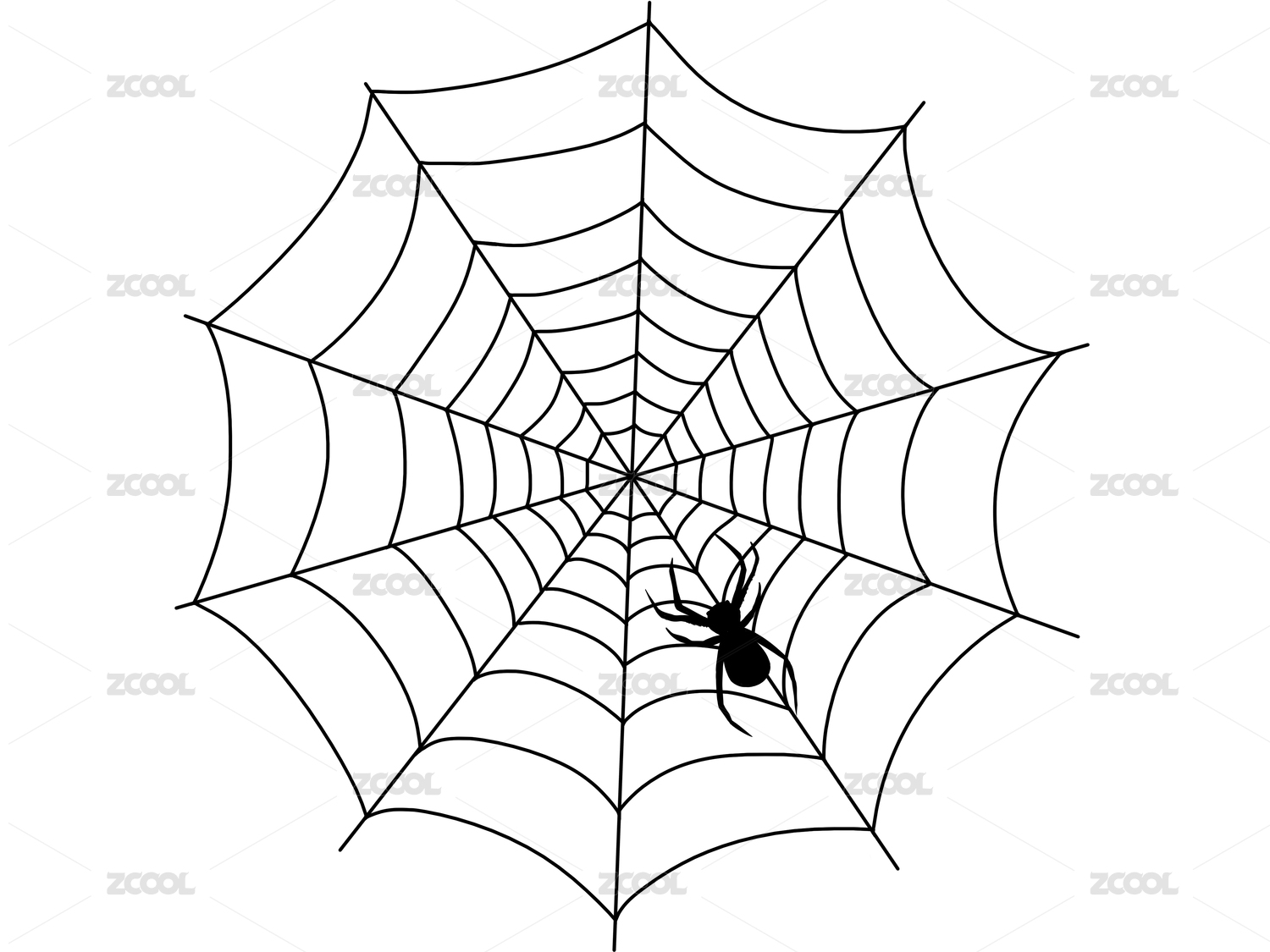黑色蜘蛛家族们挂在网丝上织网元素