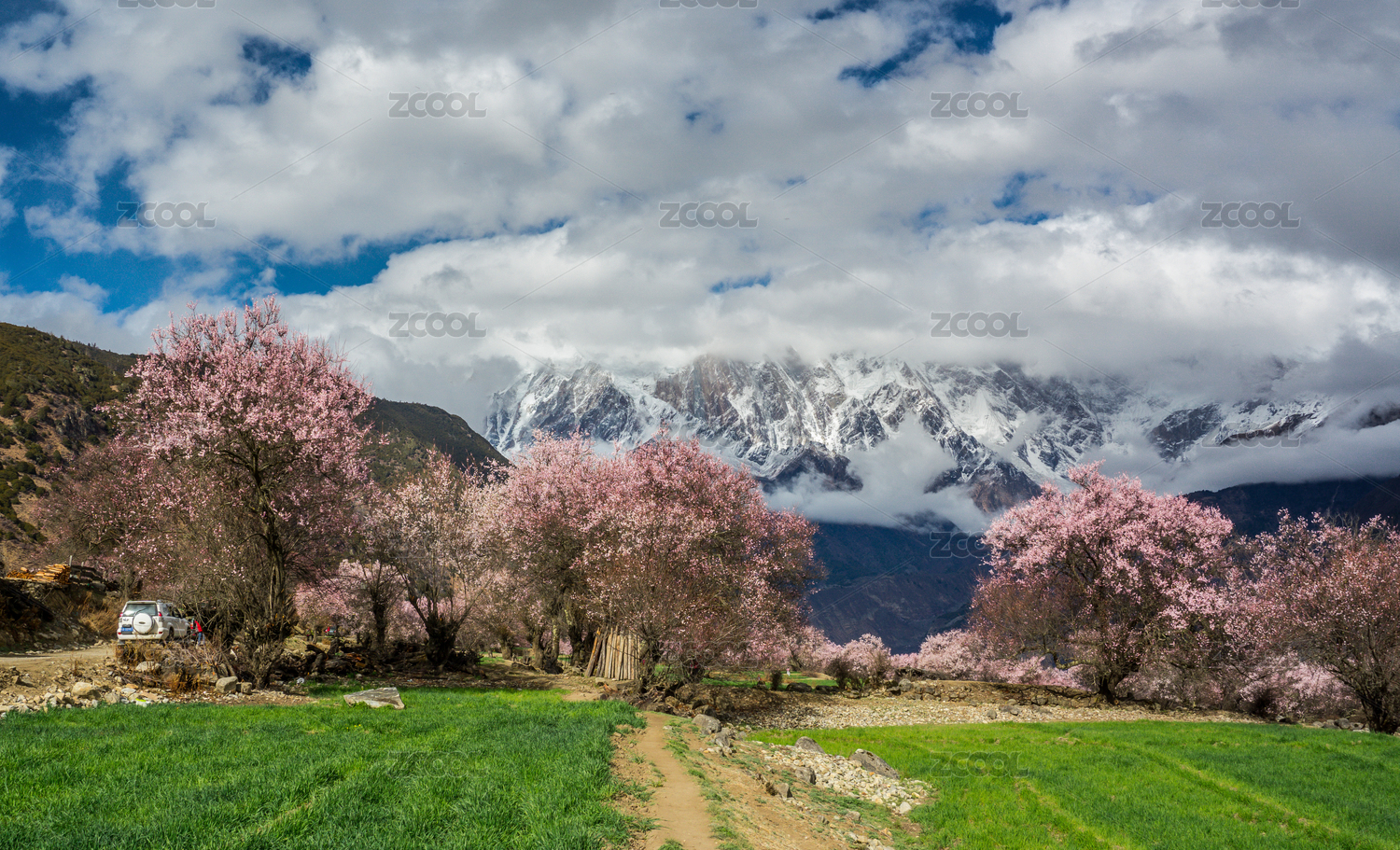 西藏林芝桃花索松村雅鲁藏布江峡谷自然风光