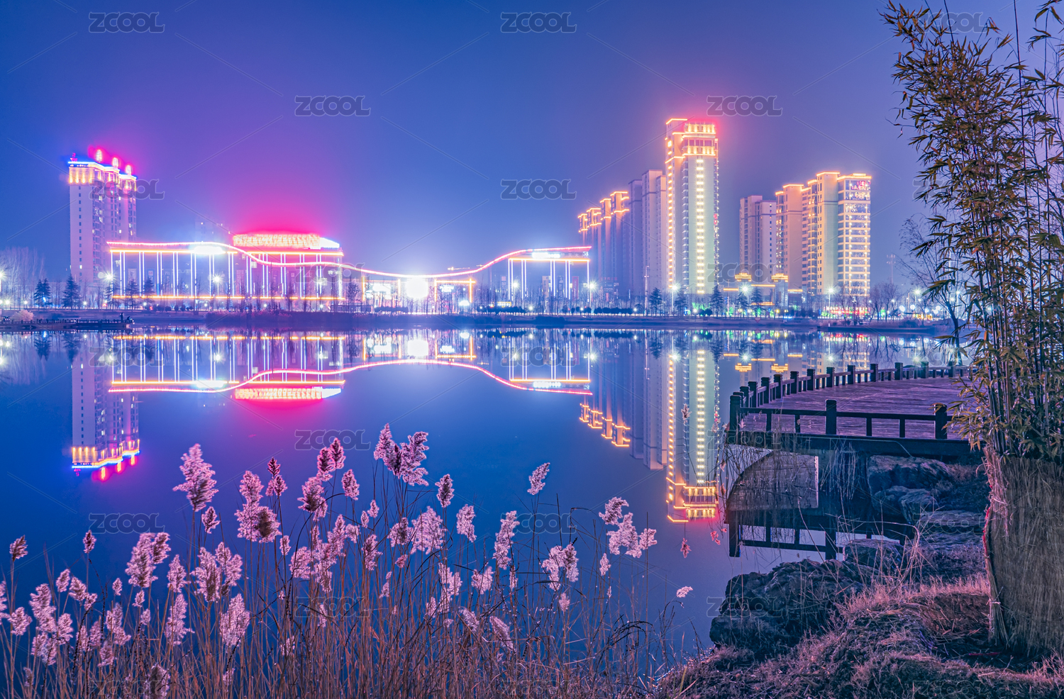 夜景,无人,户外,湿地公园,灯光,桥,亭子,反射,漳泽湖,多孔桥