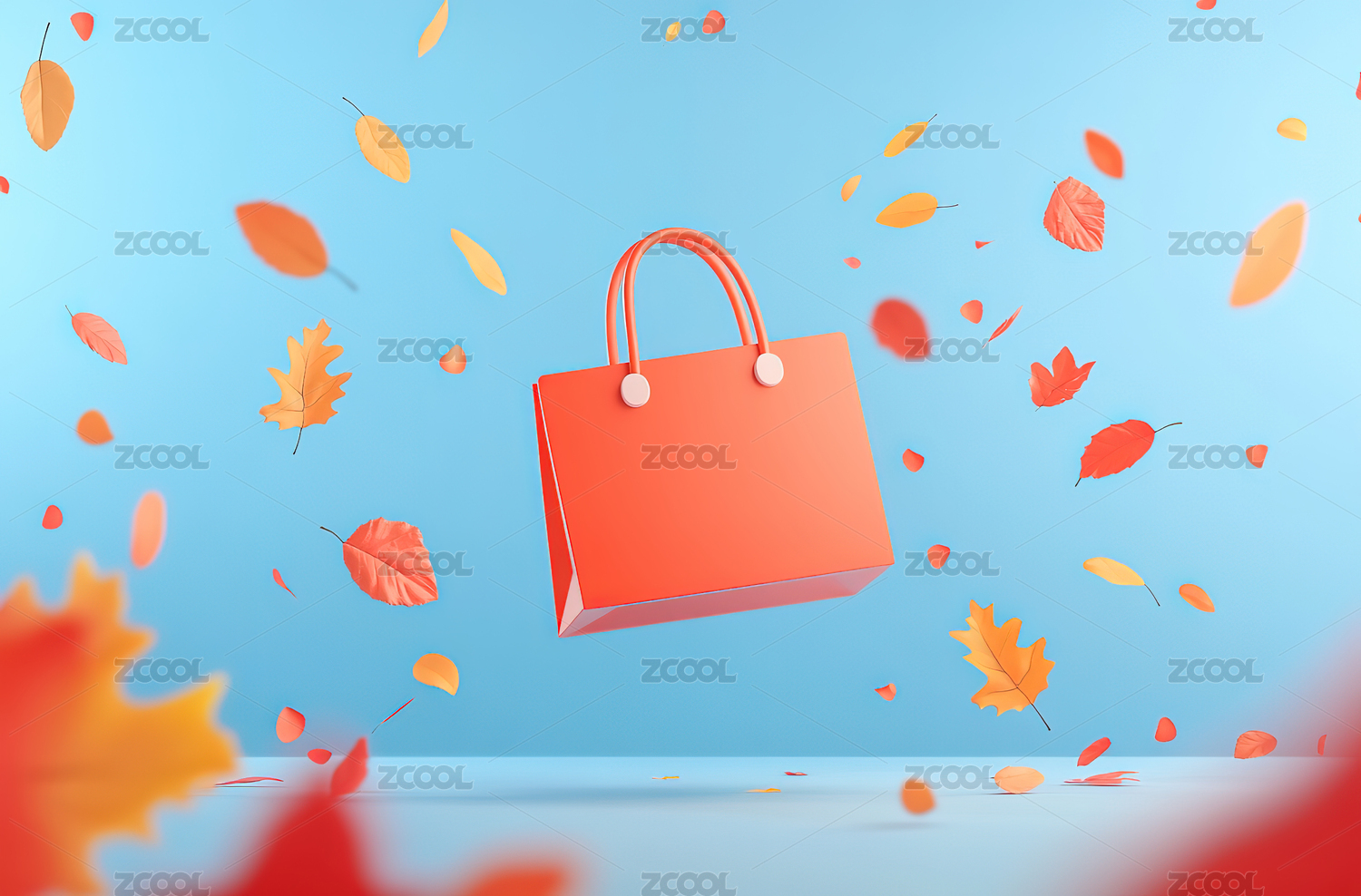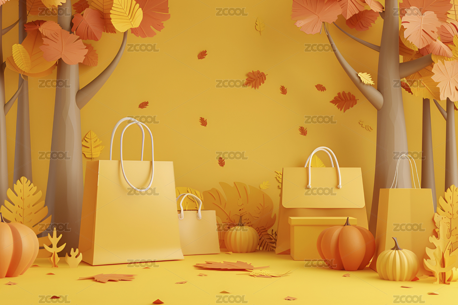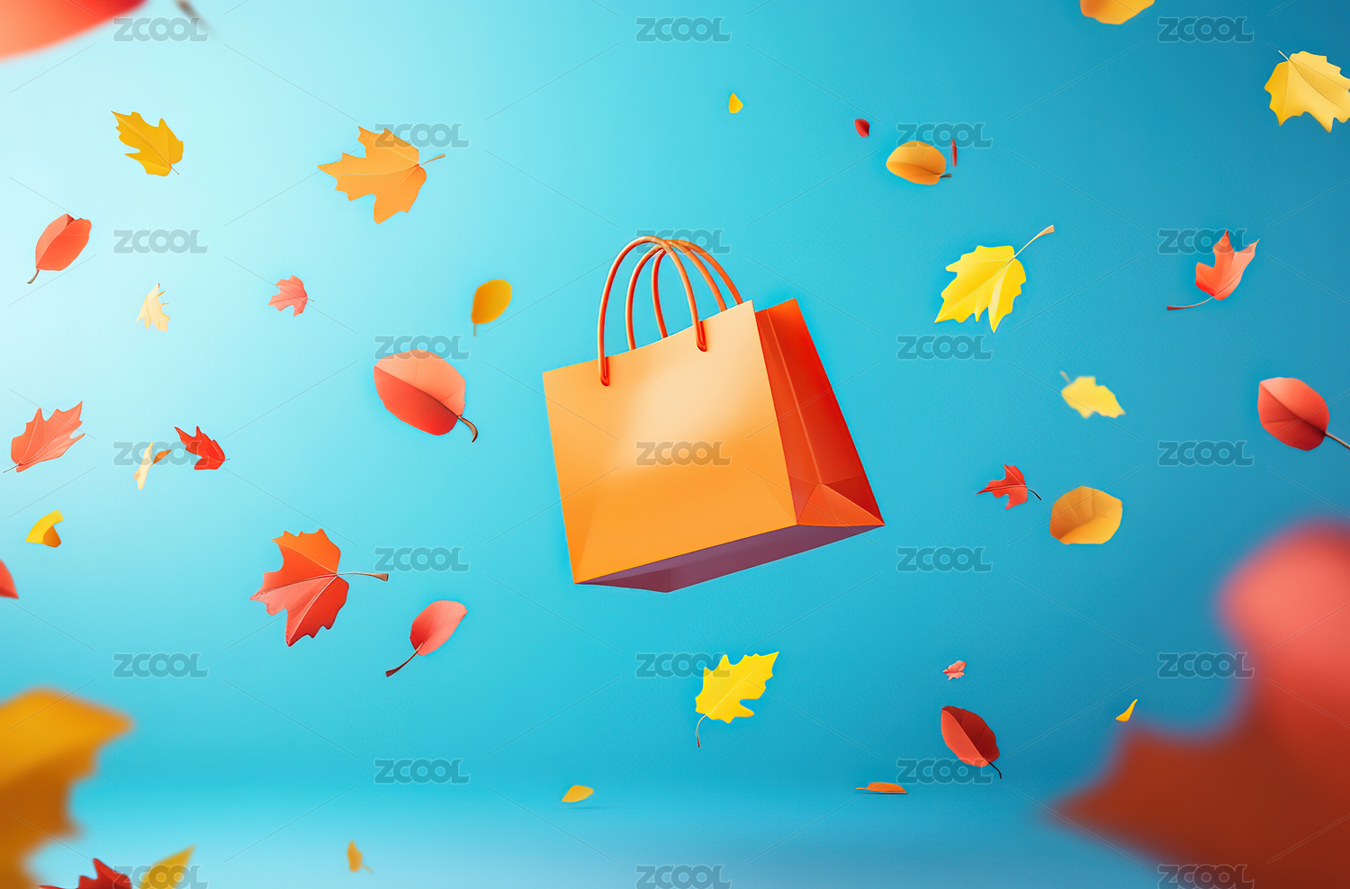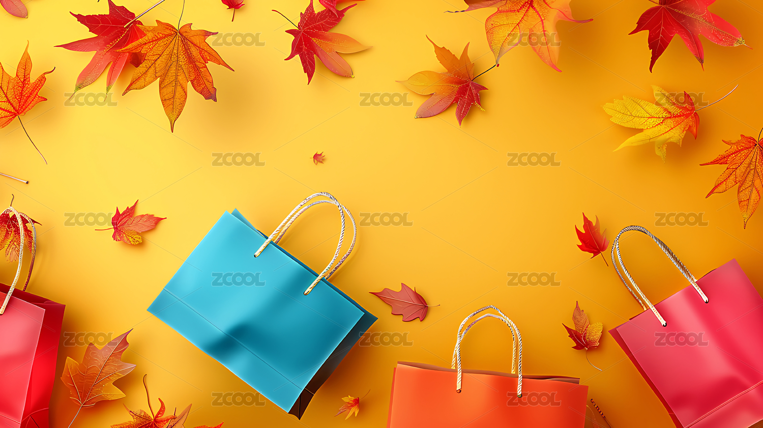 购物节,黄色,背景,购物袋,手提袋,彩色,枫叶,红叶,三维,场景