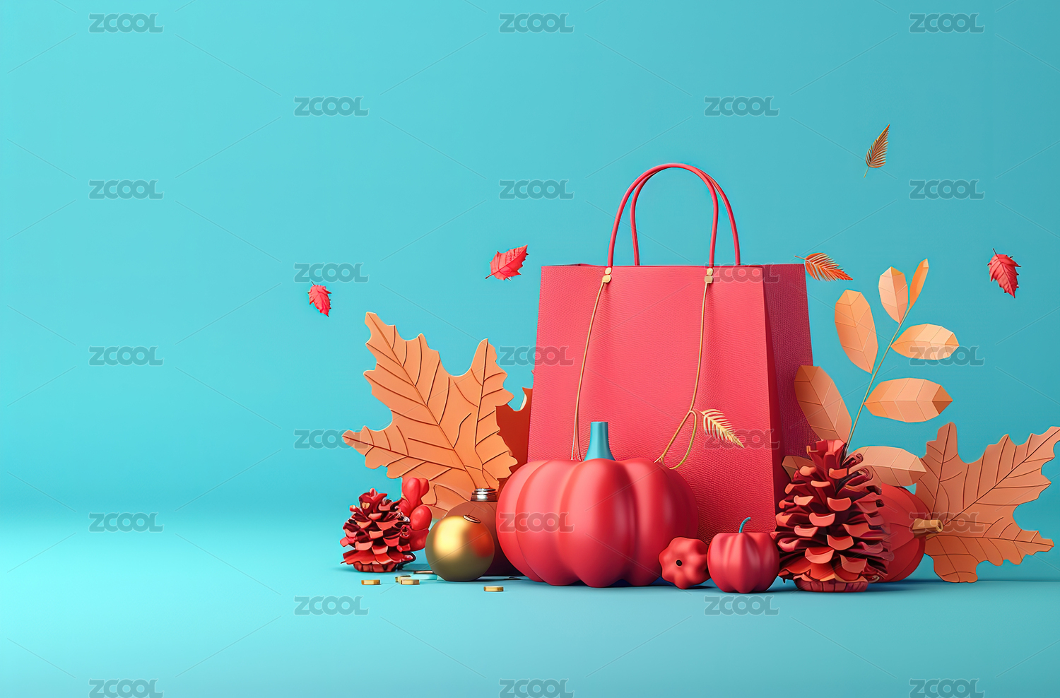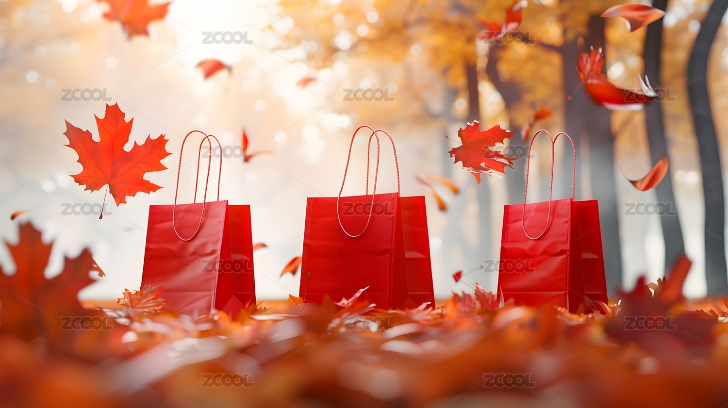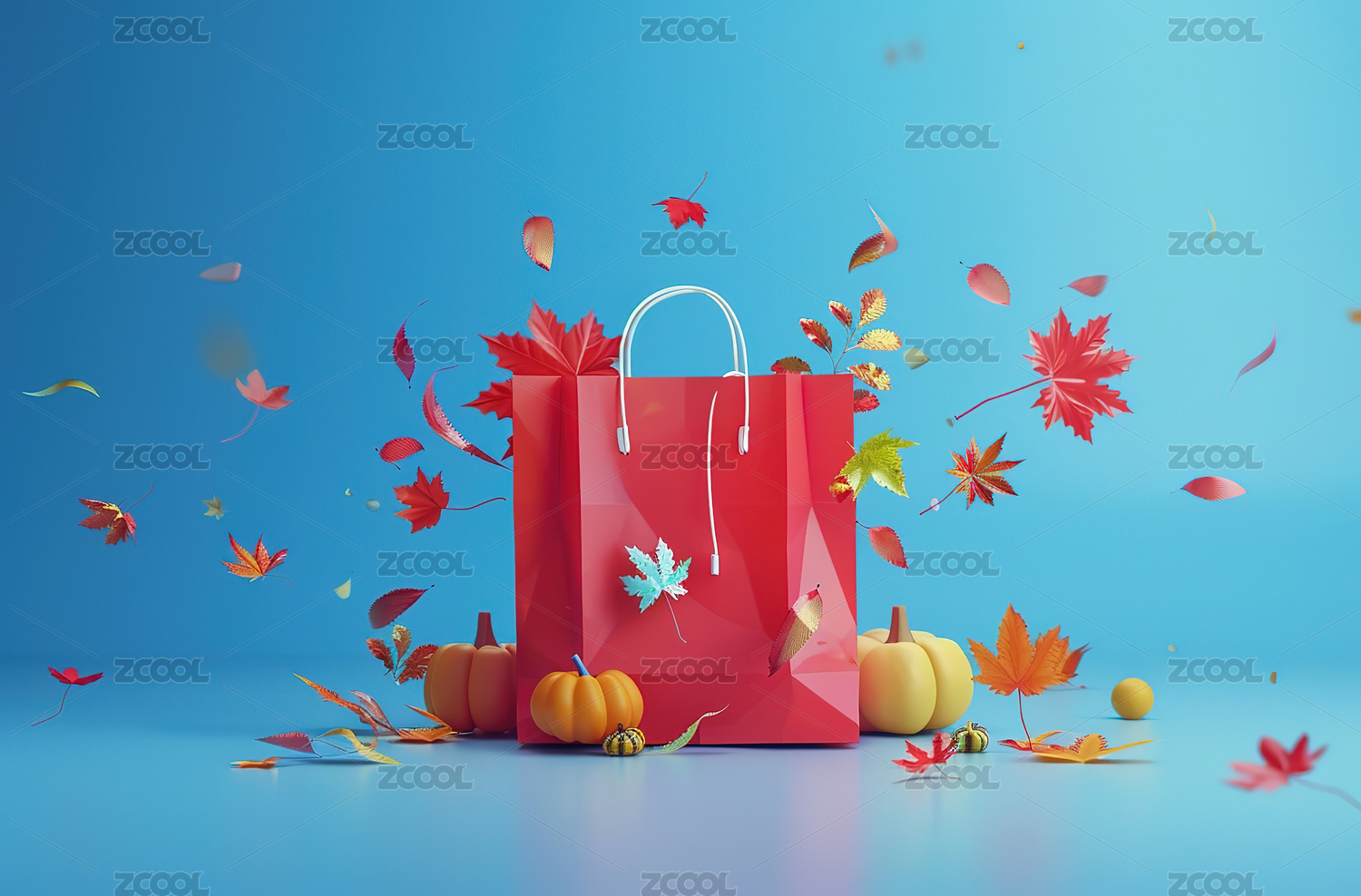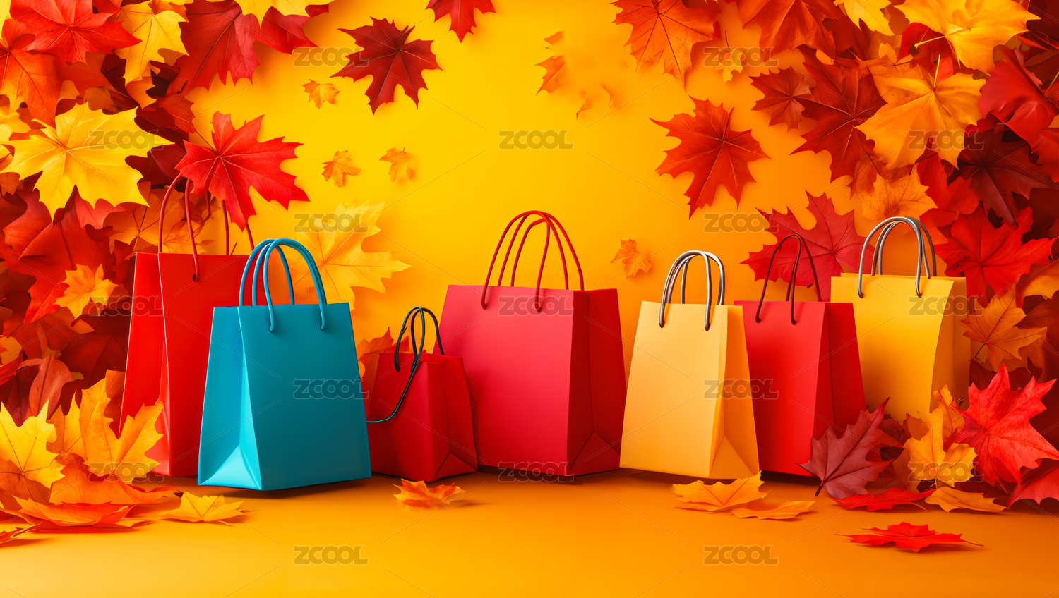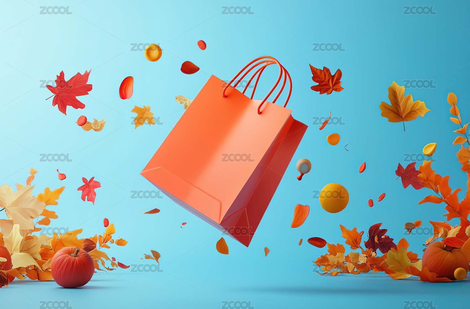 购物节,黄色,背景,购物袋,手提袋,彩色,枫叶,红叶,三维,场景