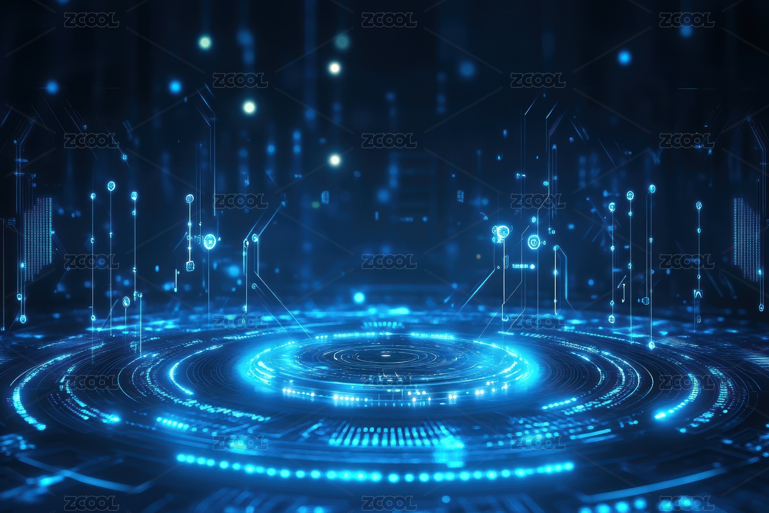 未来科技感环形光效蓝色科技圆环背景