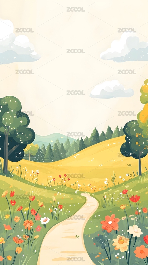 田园,风景,春天,阳光,彩色,梦幻,插画,绘画,艺术,自然