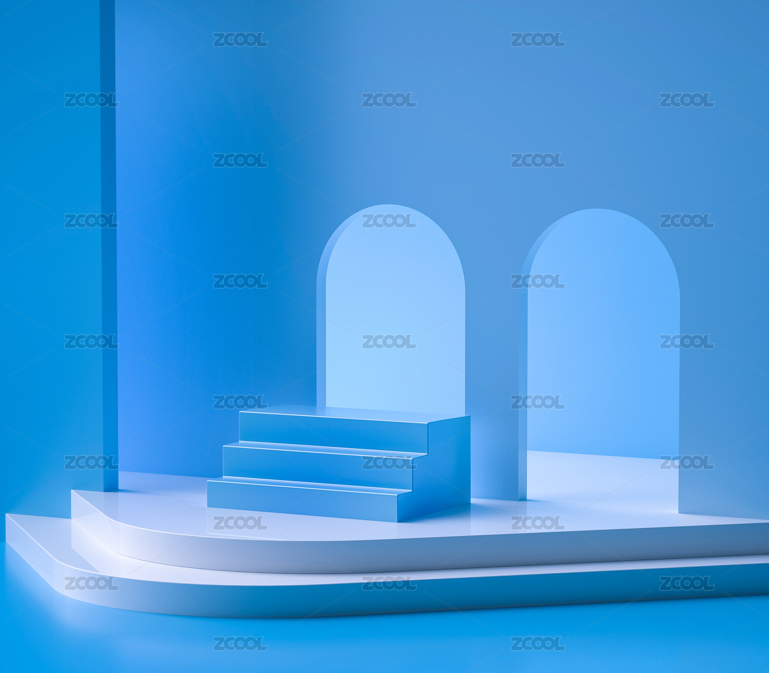 3D楼梯三维场景拱门蓝色