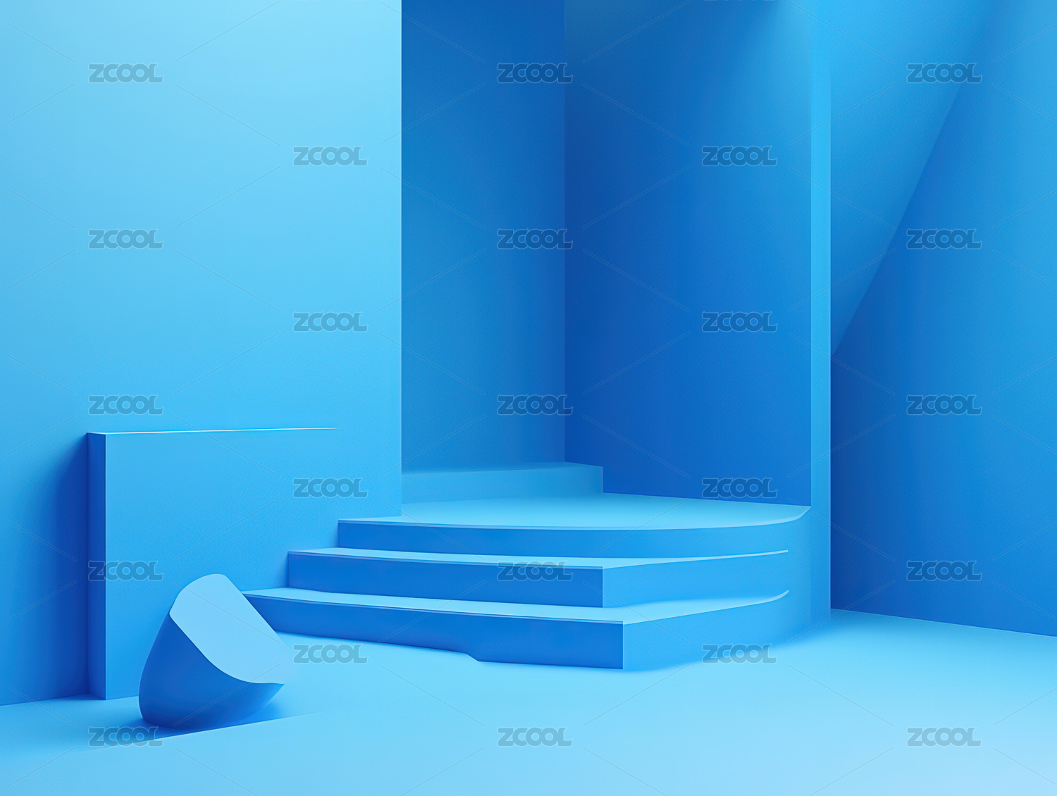 三维渲染的蓝色几何体展台背景