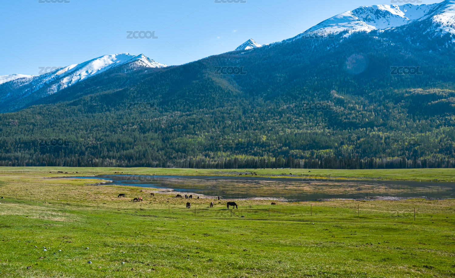 中国新疆喀纳斯公园白哈巴雪山下的高山草场