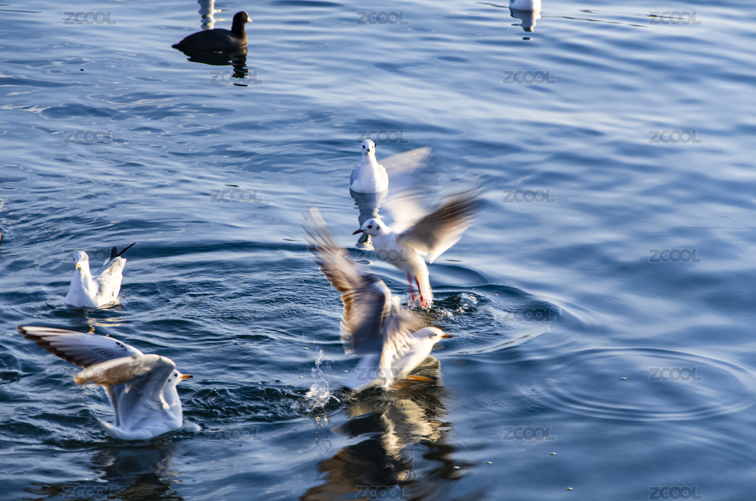 初冬来自西伯利亚的海鸥在西昌邛海湖面盘旋