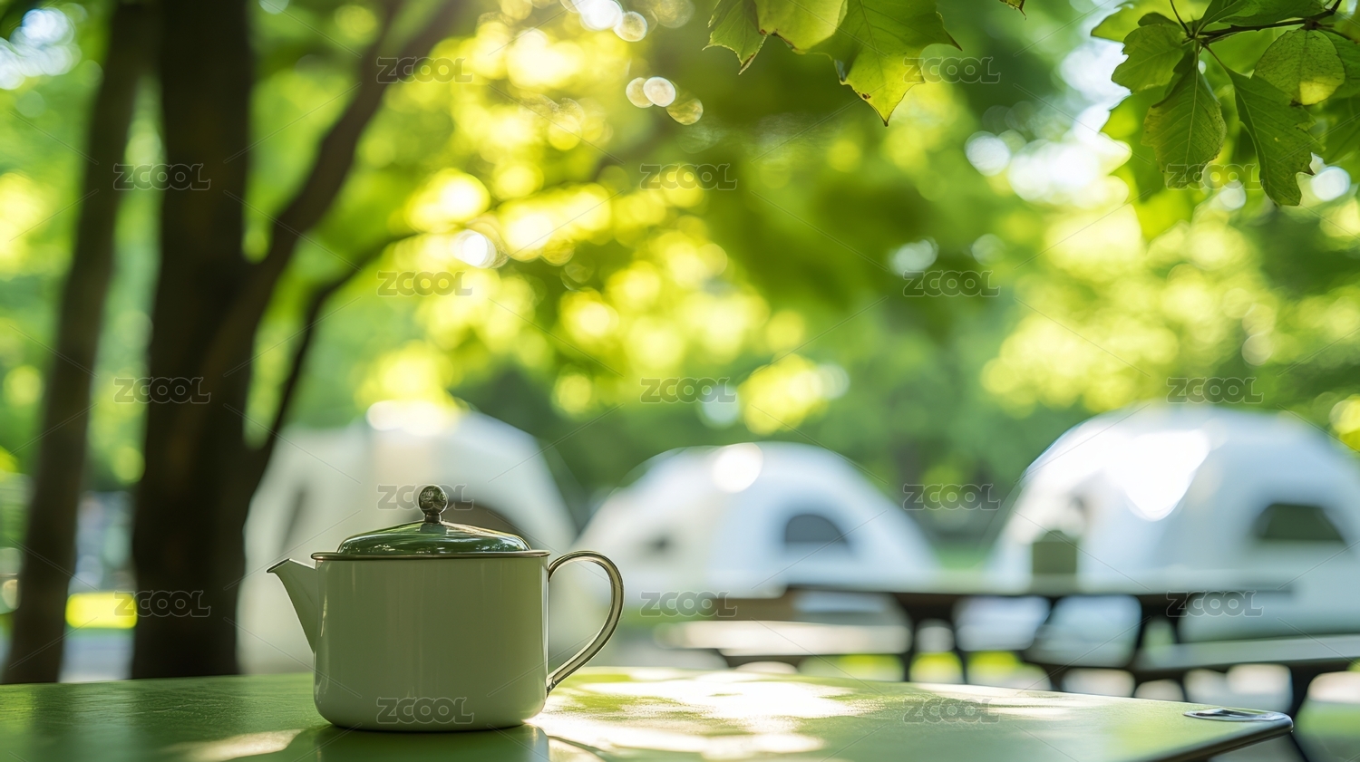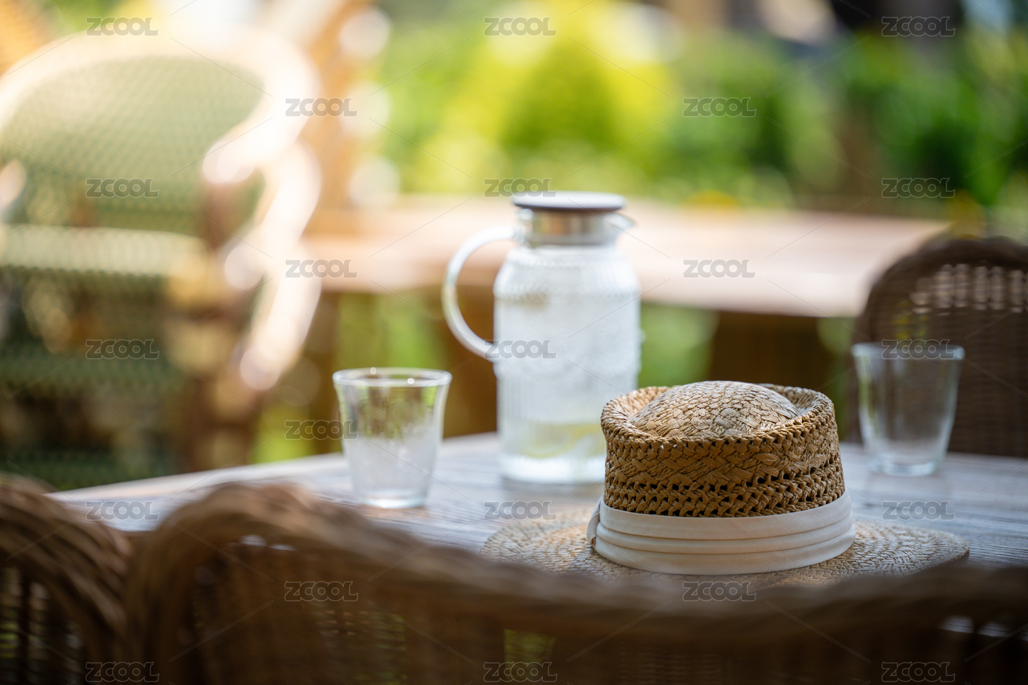 户外,绿地,冰咖啡,露营桌,柠檬,西瓜,砧板,阳光,下午,夏天
