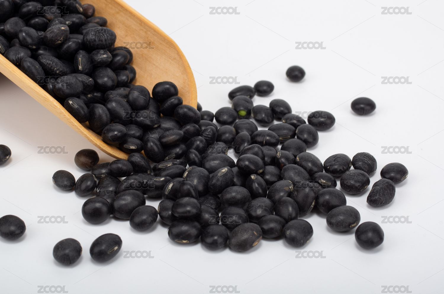 黑豆,木盘子,棕色木纹桌面,颗粒,暗色调,木勺子