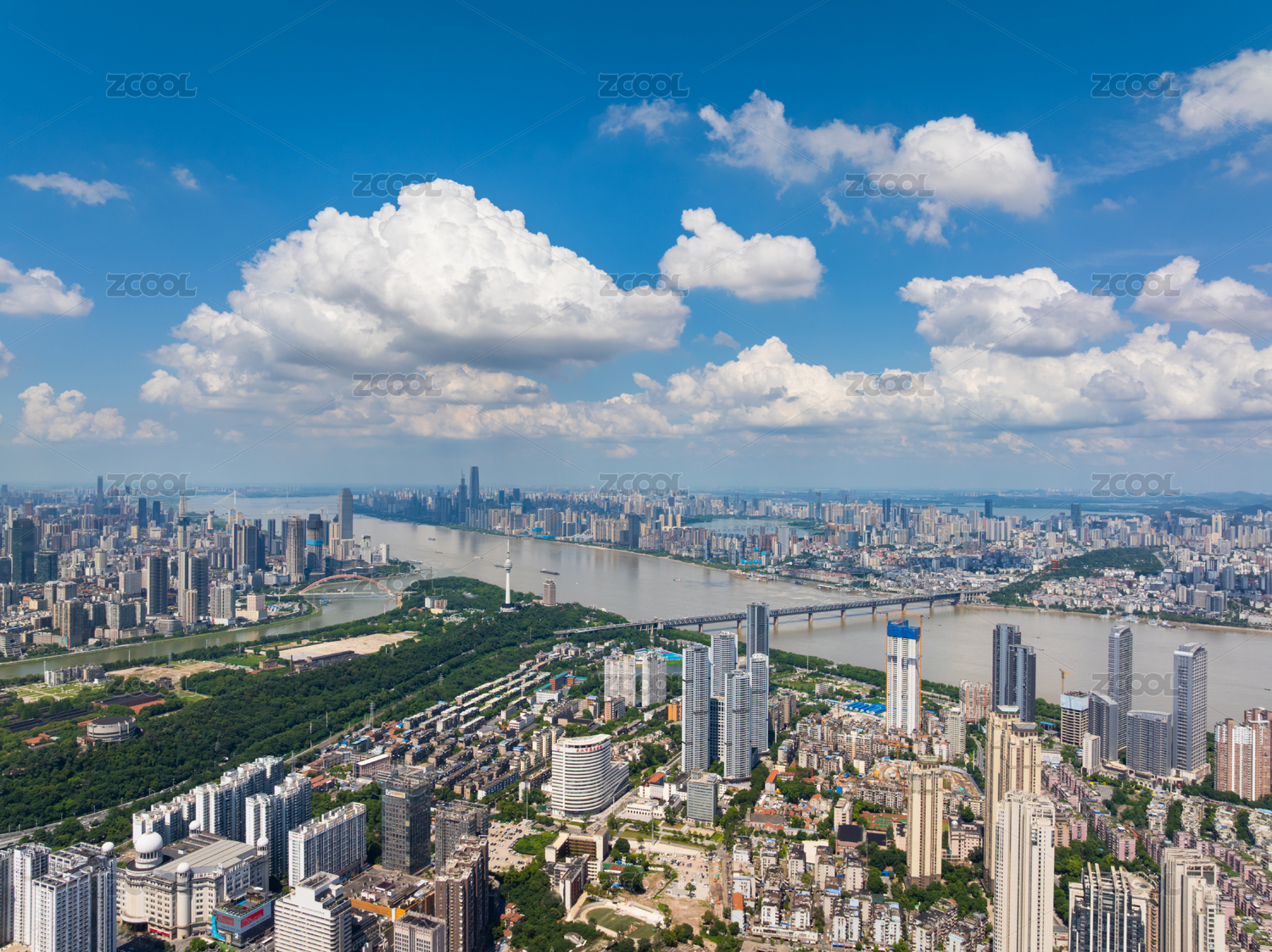 武汉夏日城市地标和天际线风光