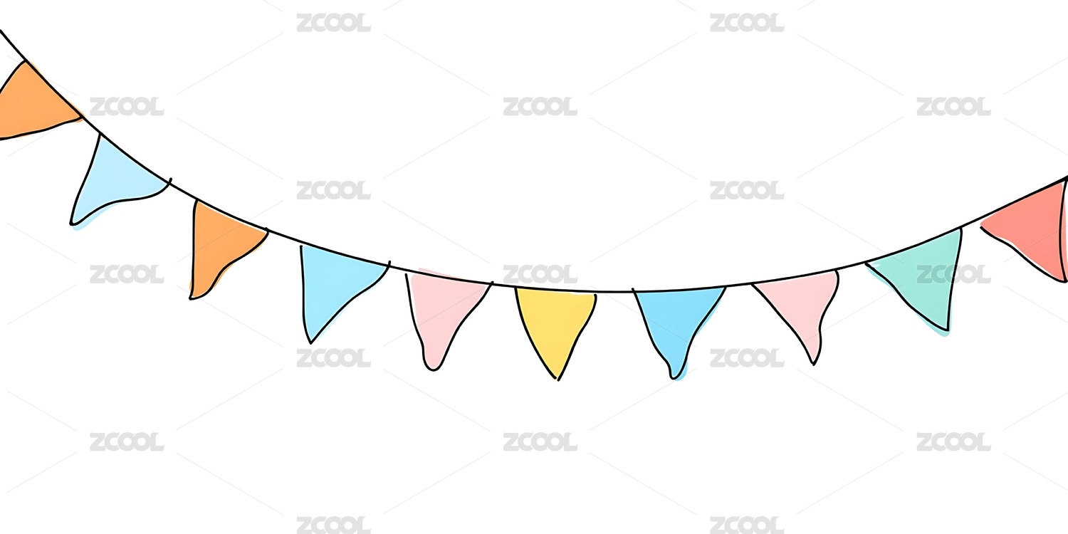 节日派对彩色三角旗卡通插画