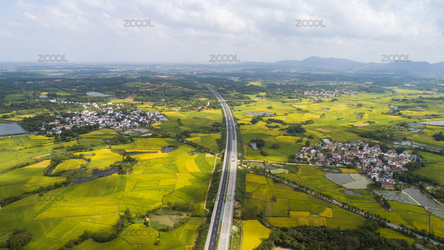 航拍穿过美好乡村的高速公路