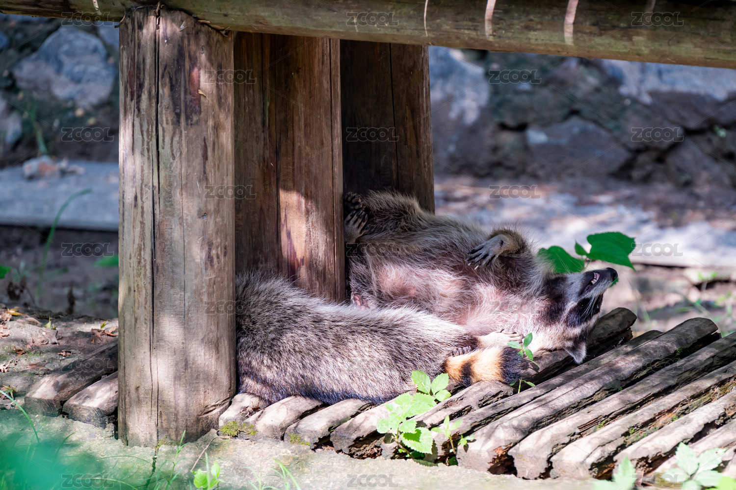 晴朗的午后,正在午休的浣熊