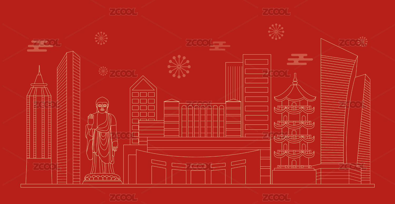 城市,线条,标志,建筑,插画,矢量,地标,轮廓,著名景点,市区