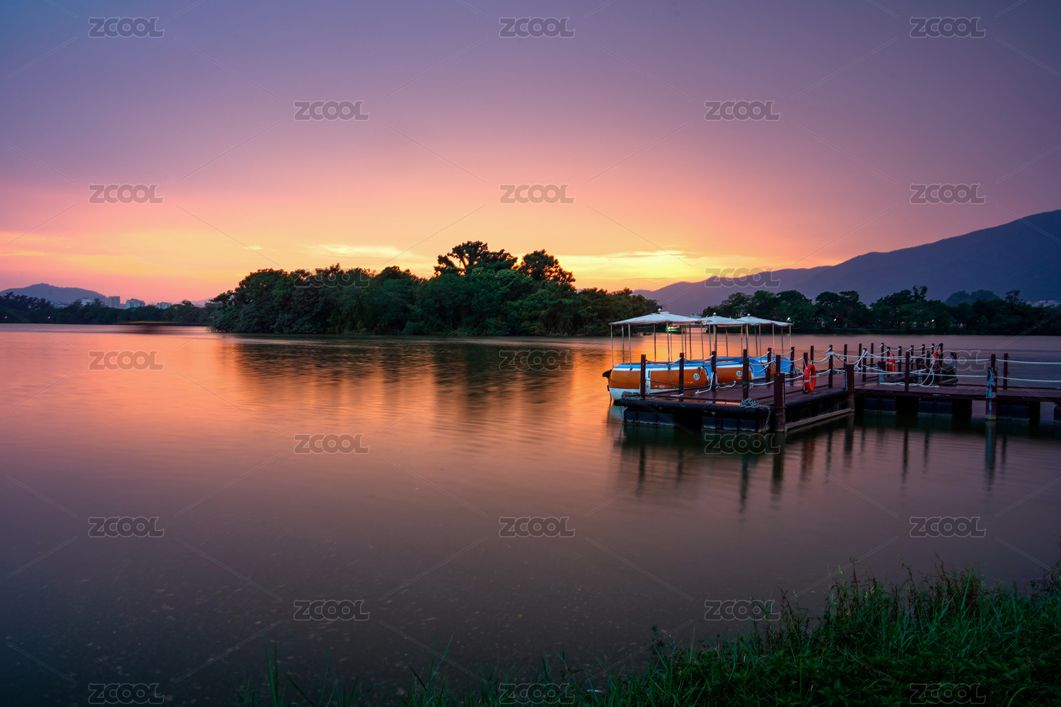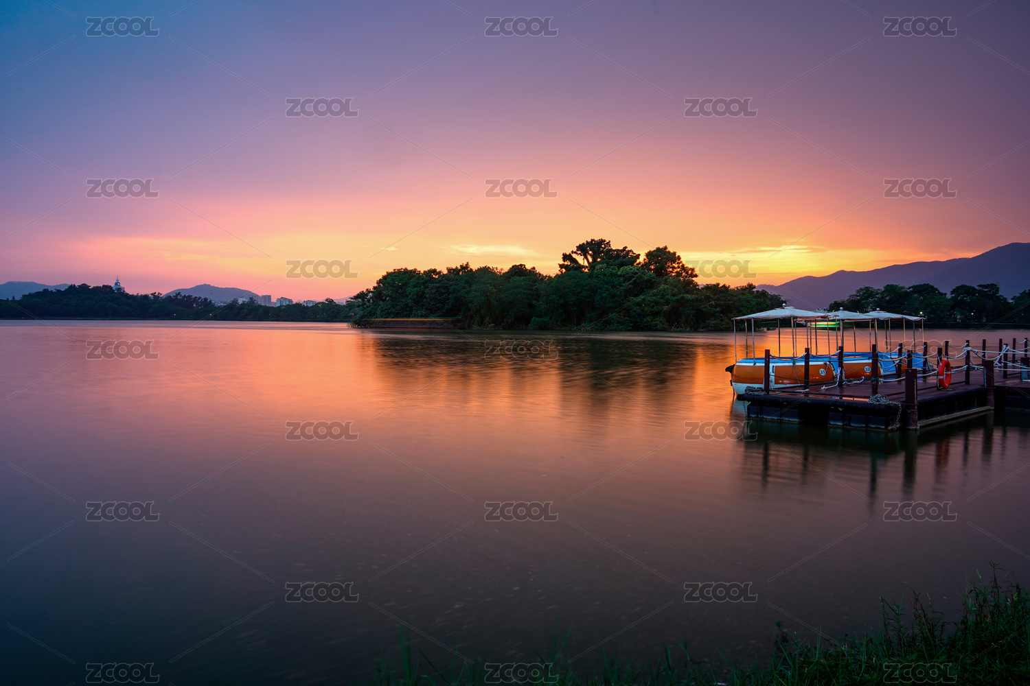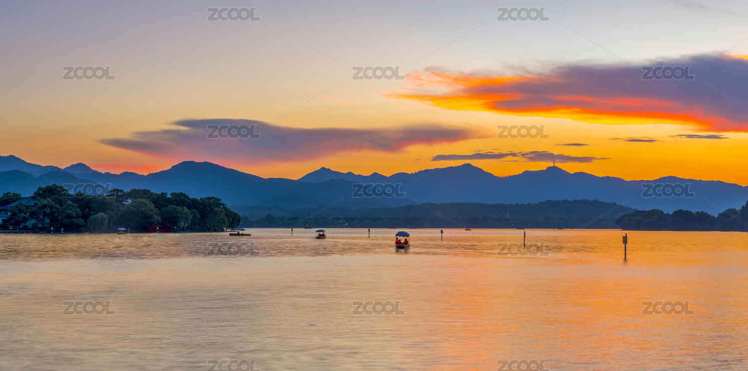 日落下的西湖山水