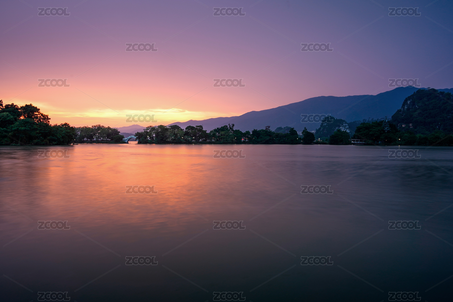 广东肇庆七星岩星湖落日斜阳
