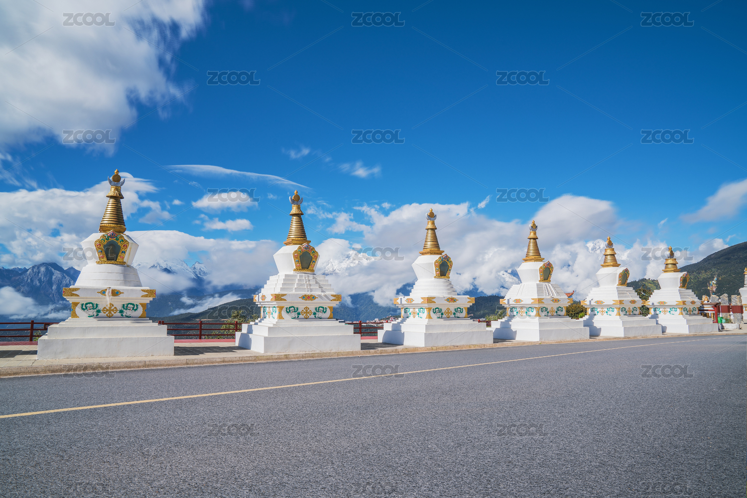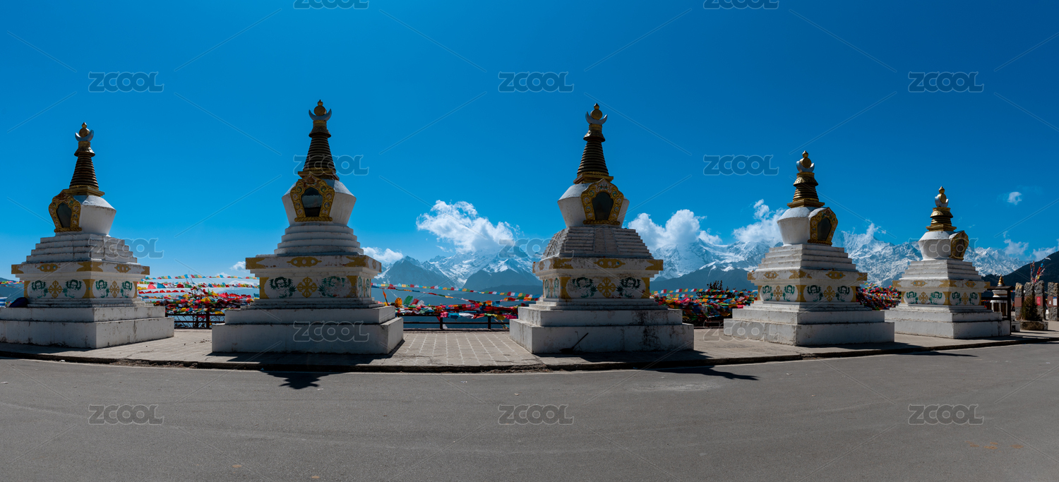 四川甘孜稻城县藏族人民绕白塔祈祷景象