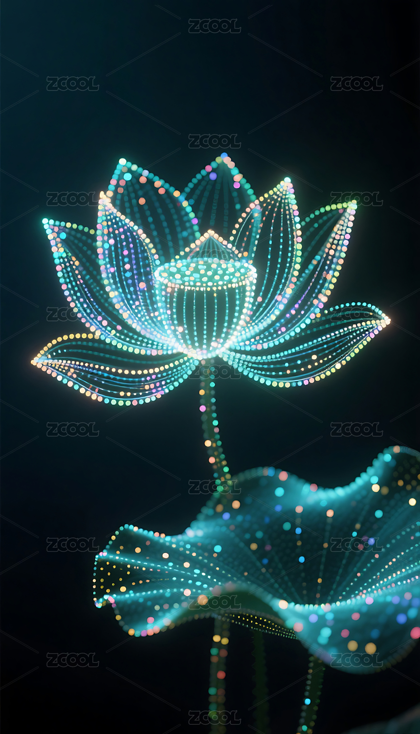 黑底X光透视彩色线条莲花荷花3D插画背景