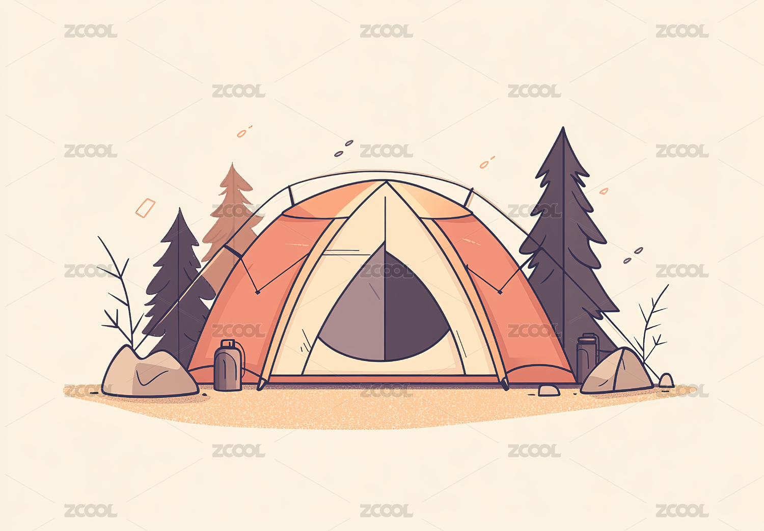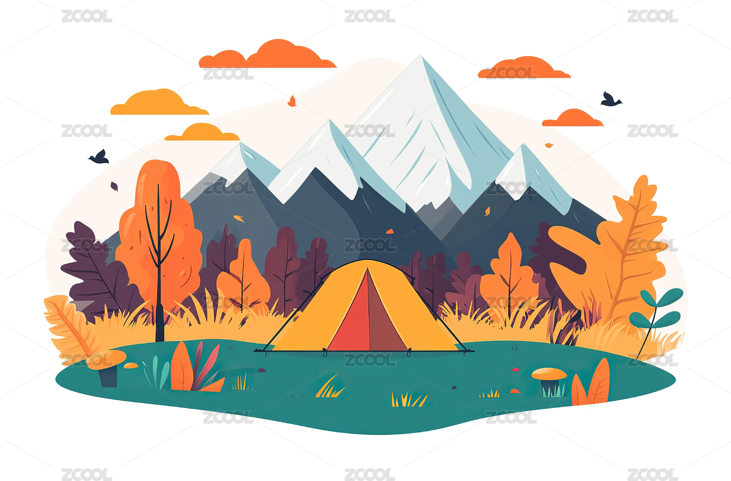 秋天在户外露营黄色的草坪上有一顶帐篷