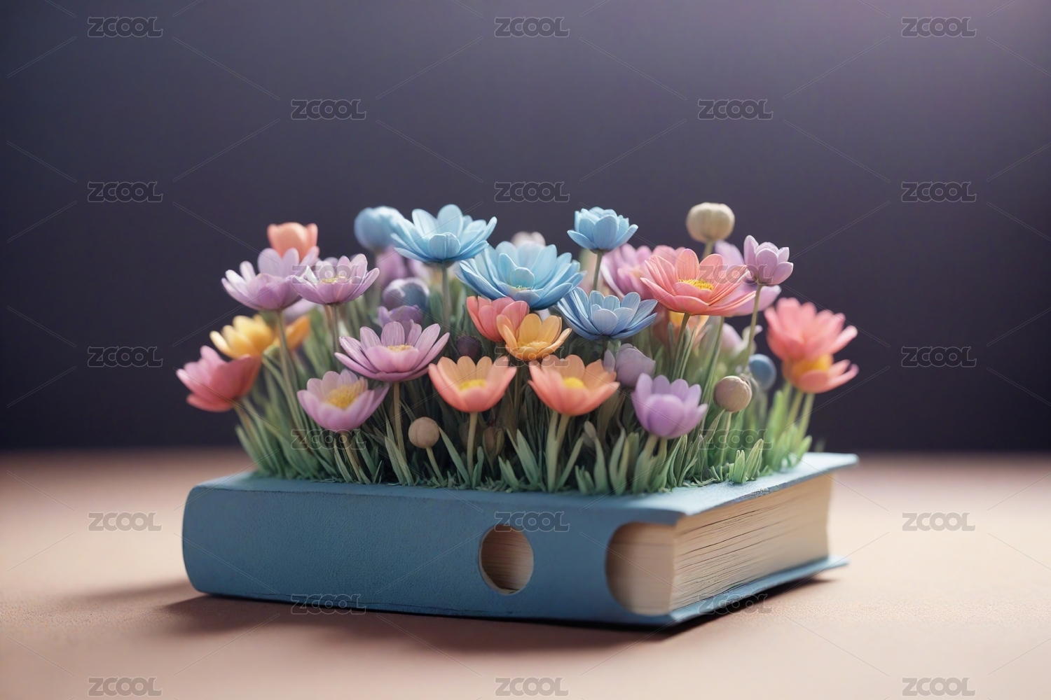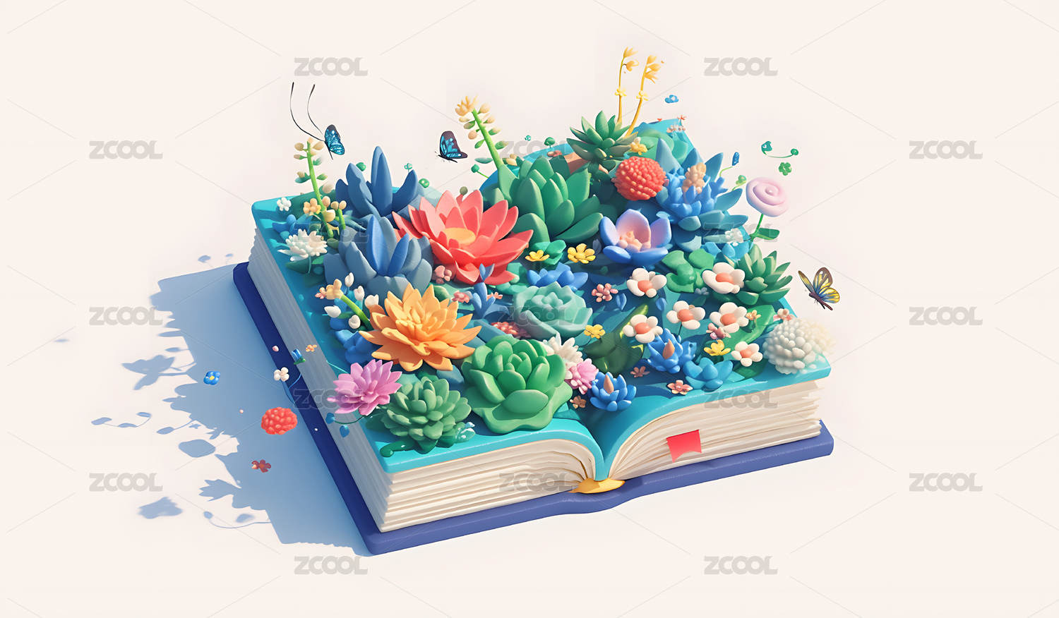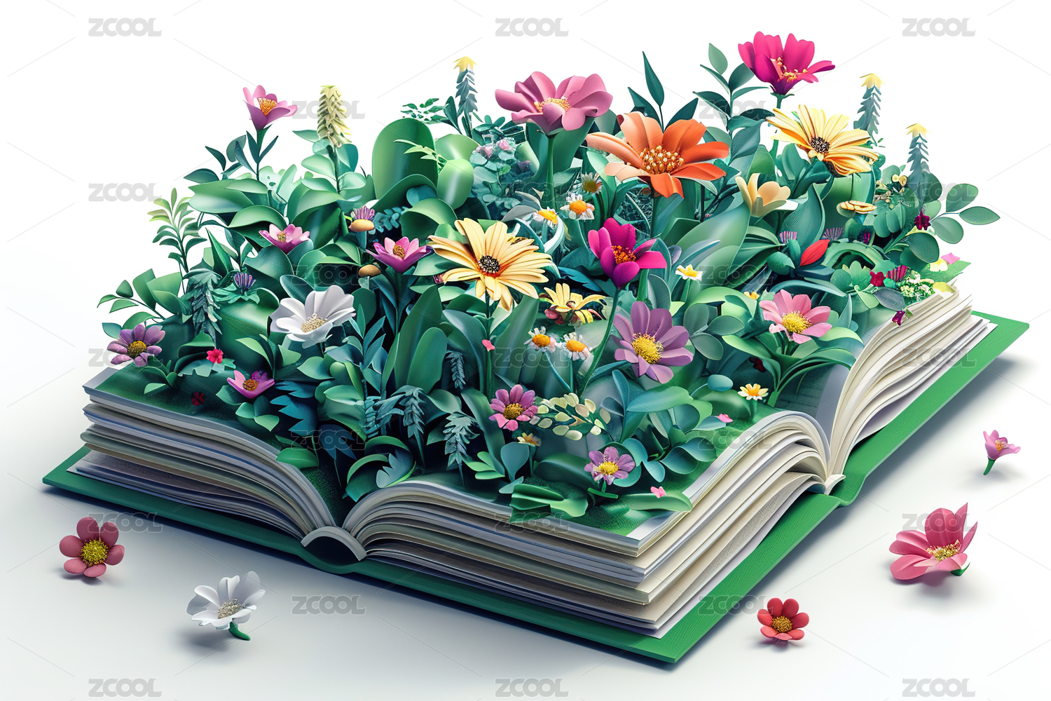 3D卡通打开的书本植物花朵背景