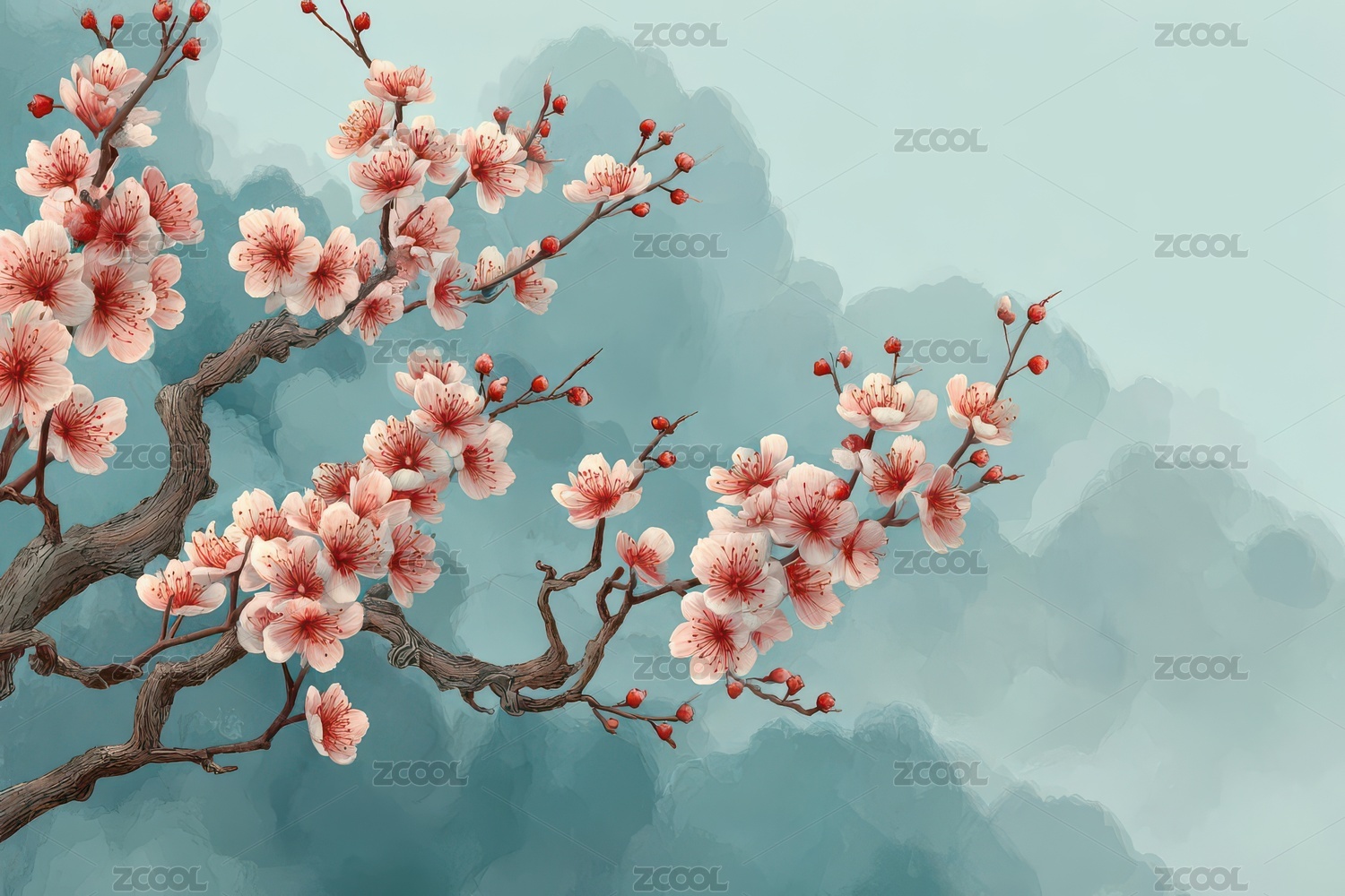 数码复古蓝色花卉装饰抽象图形海报网页背景