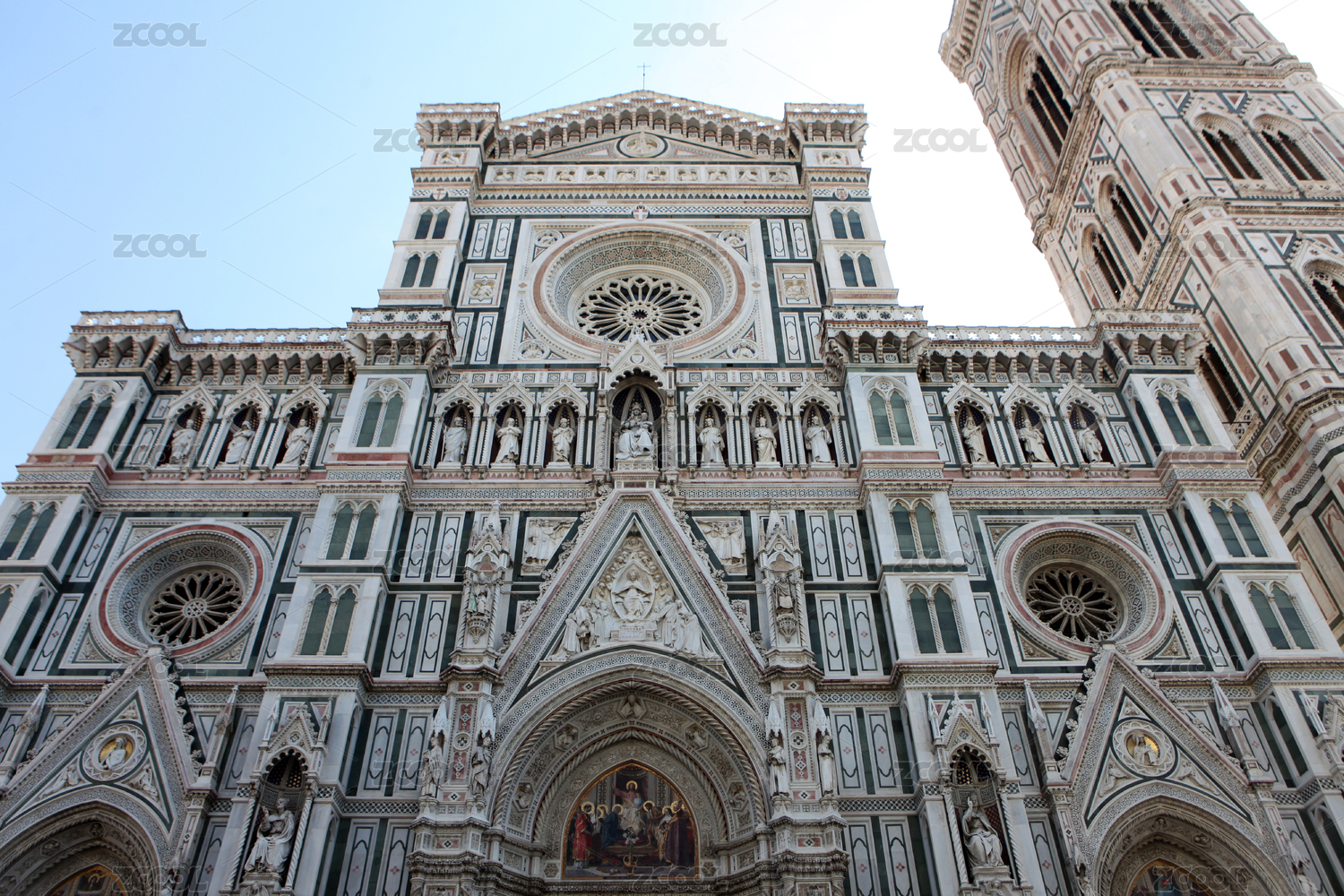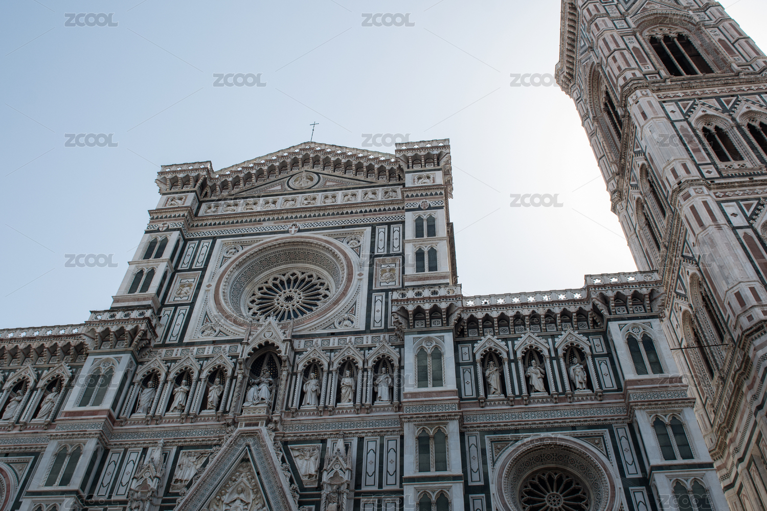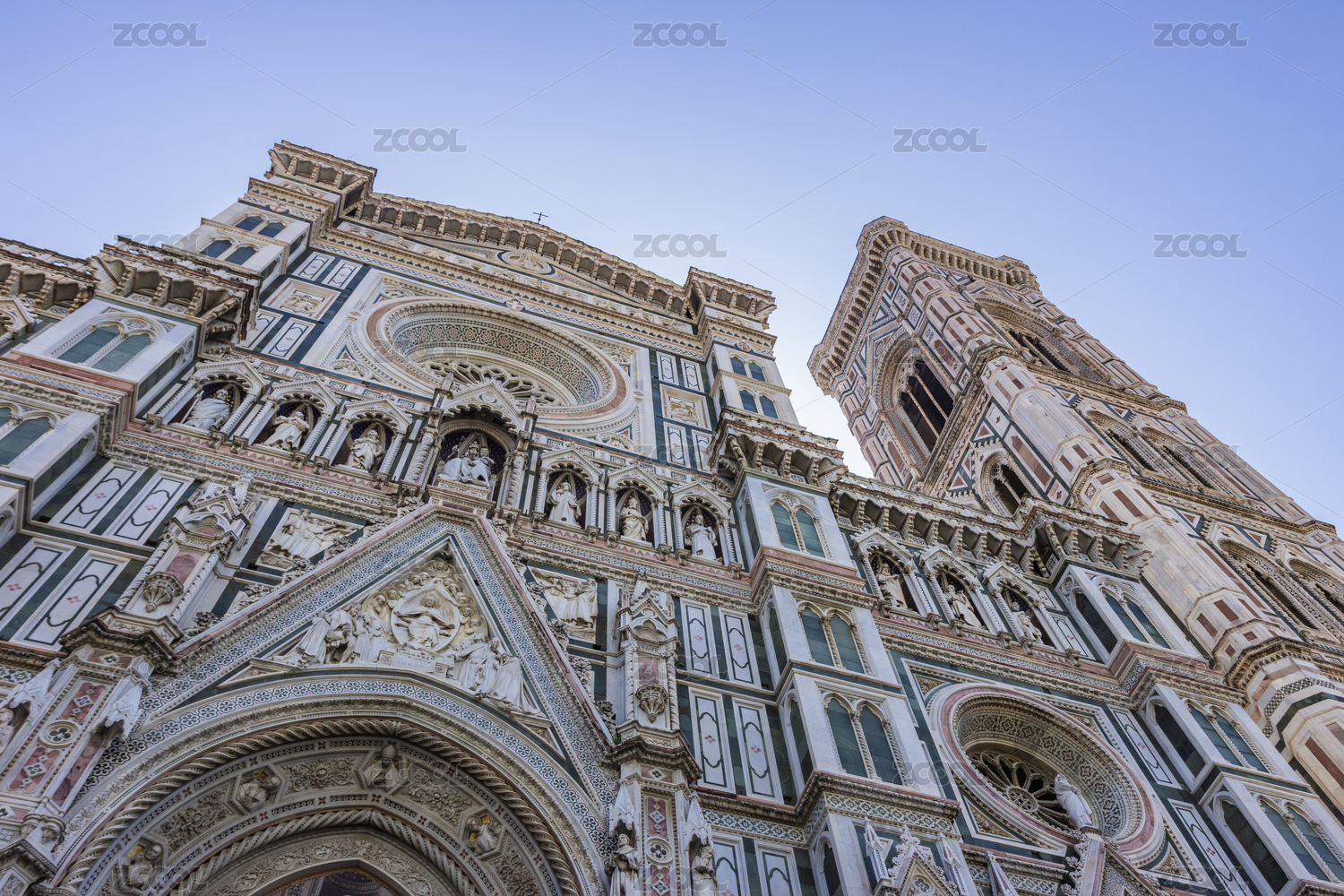 欧洲意大利佛罗伦萨圣母百花大教堂楼塔仰拍