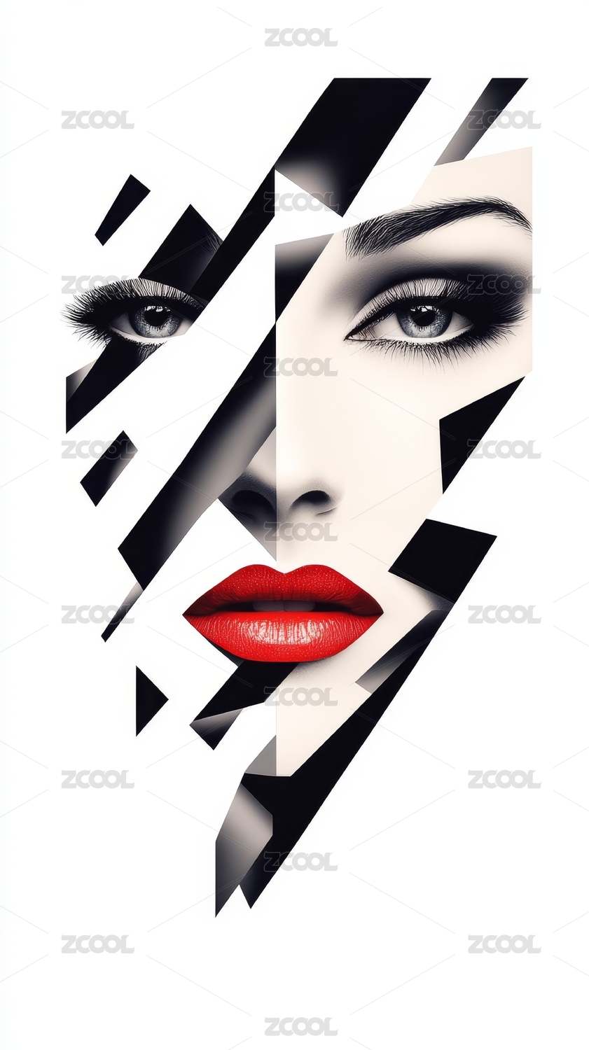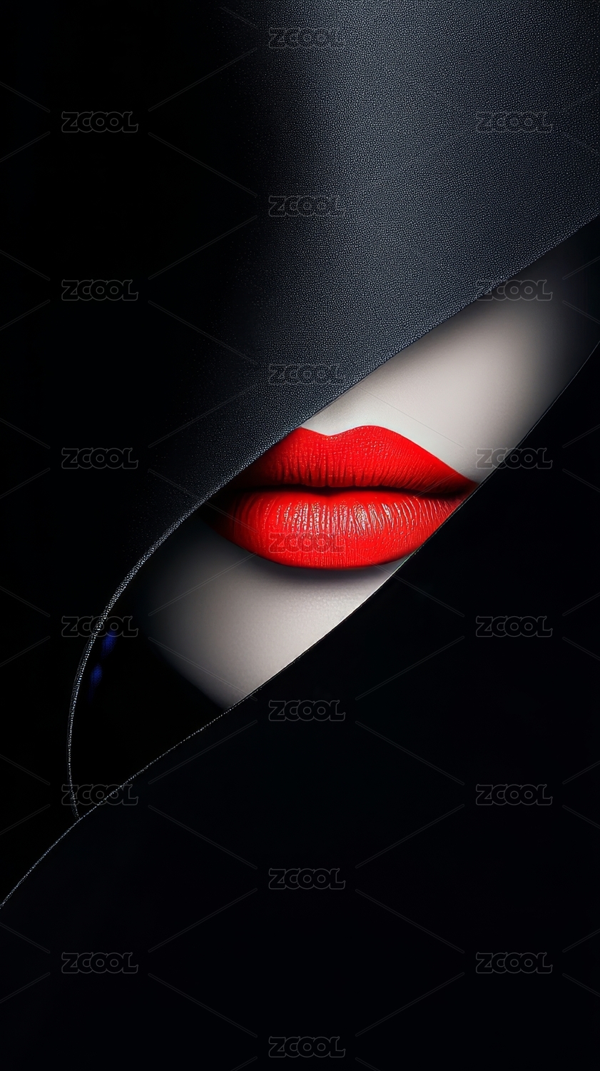 女人,肖像,阴影,暗调,特写,红唇,黑纱,面部,优雅,气质