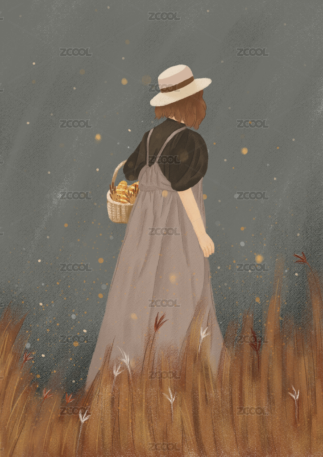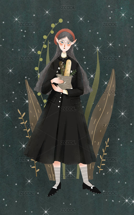 文艺插画,北欧风,学院风,黑衣服,女孩,长发