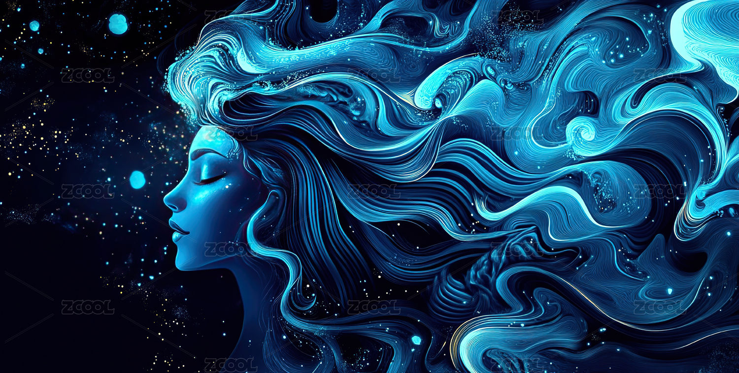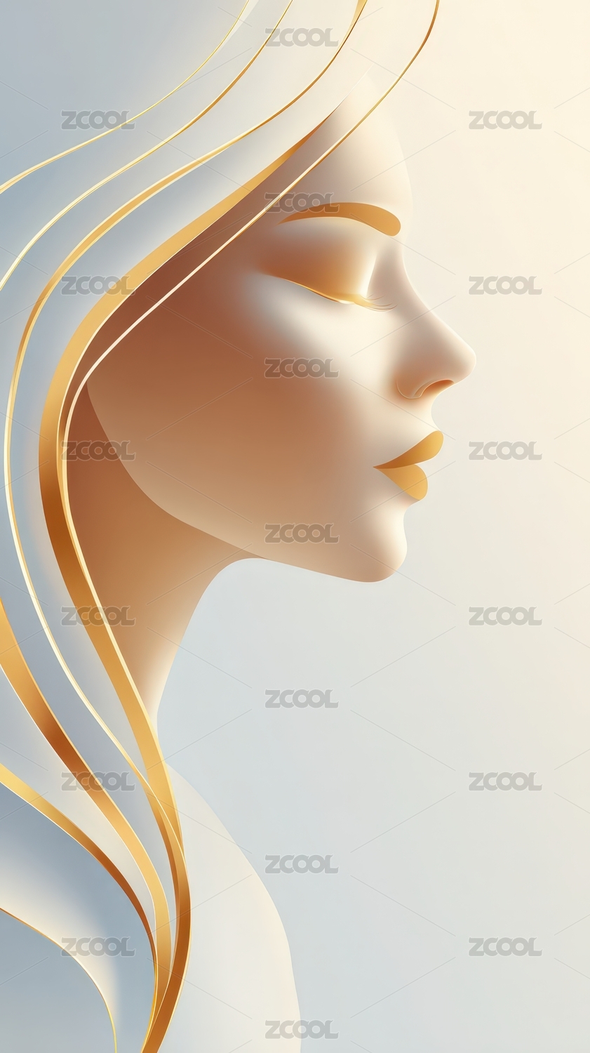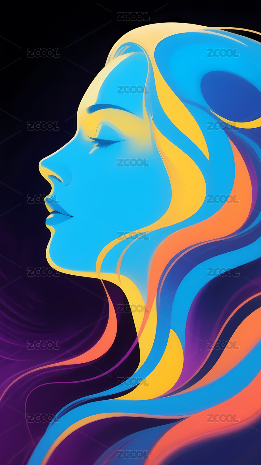 长发, 静谧, 温柔, 艺术, 神秘, 光线, 数字艺术,侧颜, 抽象, 背景