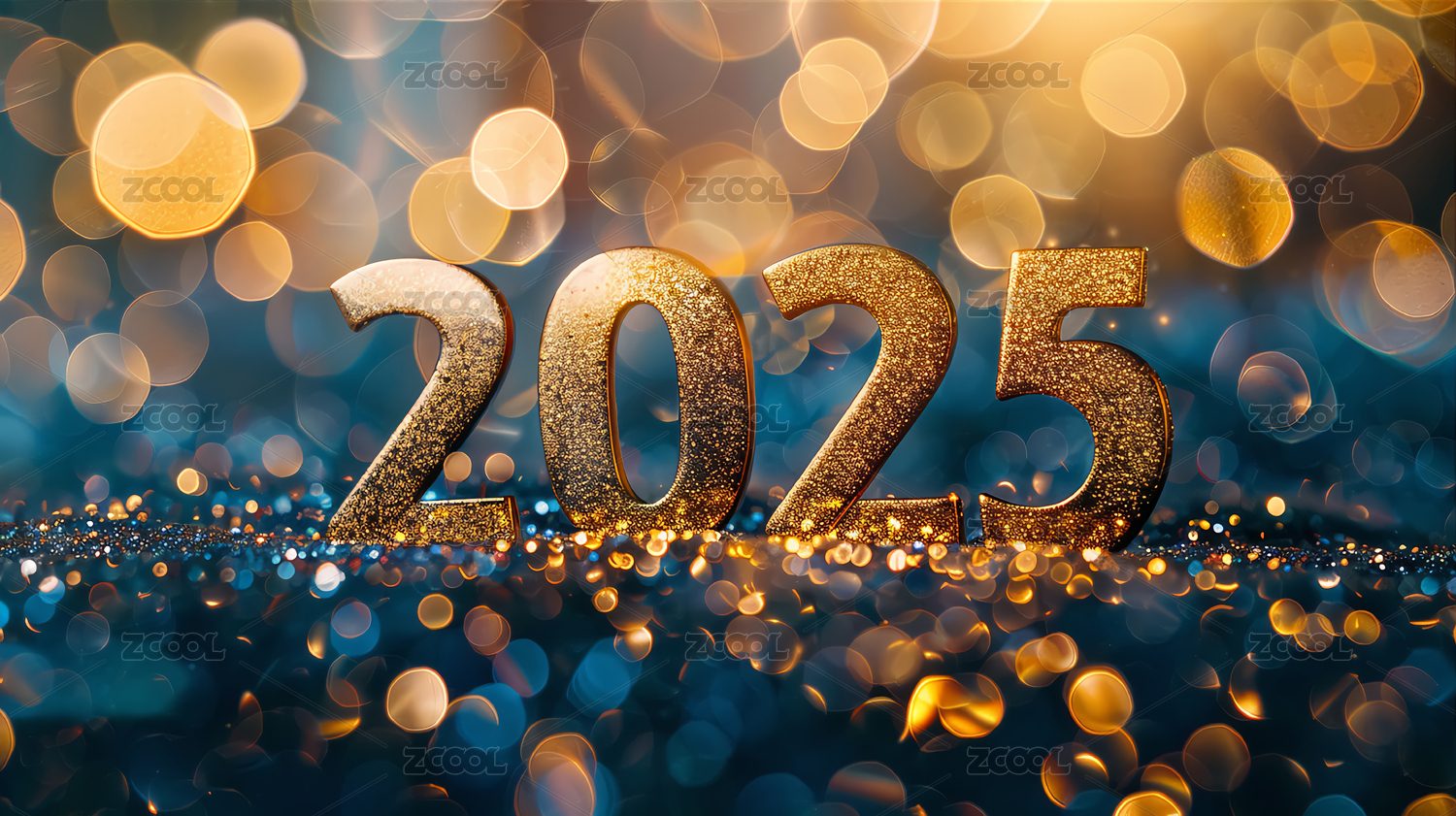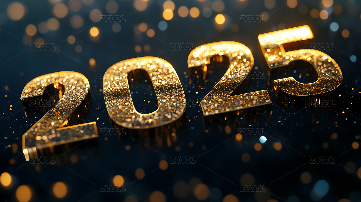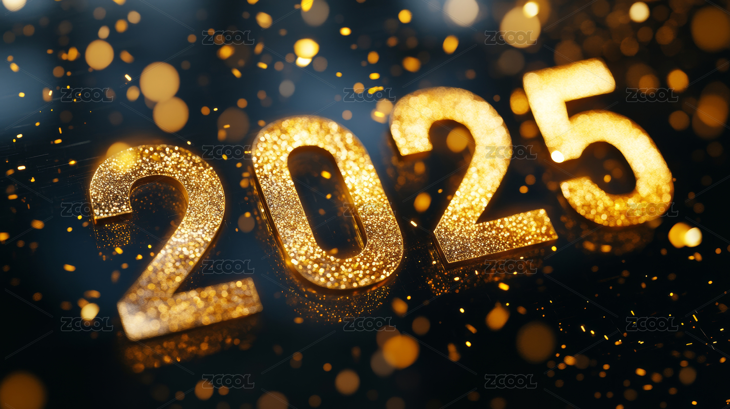 深蓝色背景金色闪光三维立体数字2025