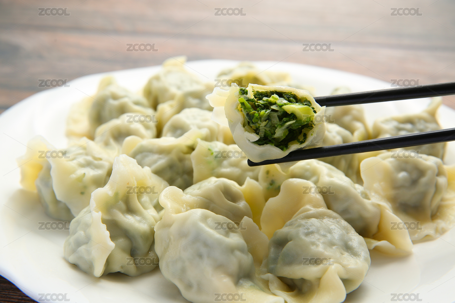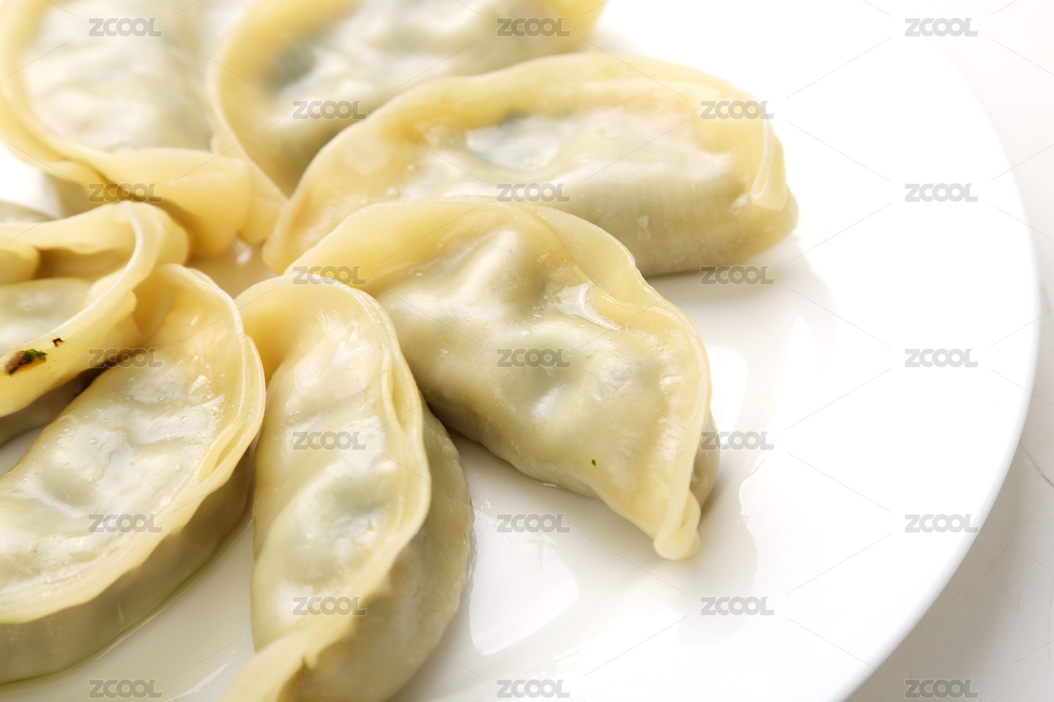 放在白色盘上的广东美食翡翠饺