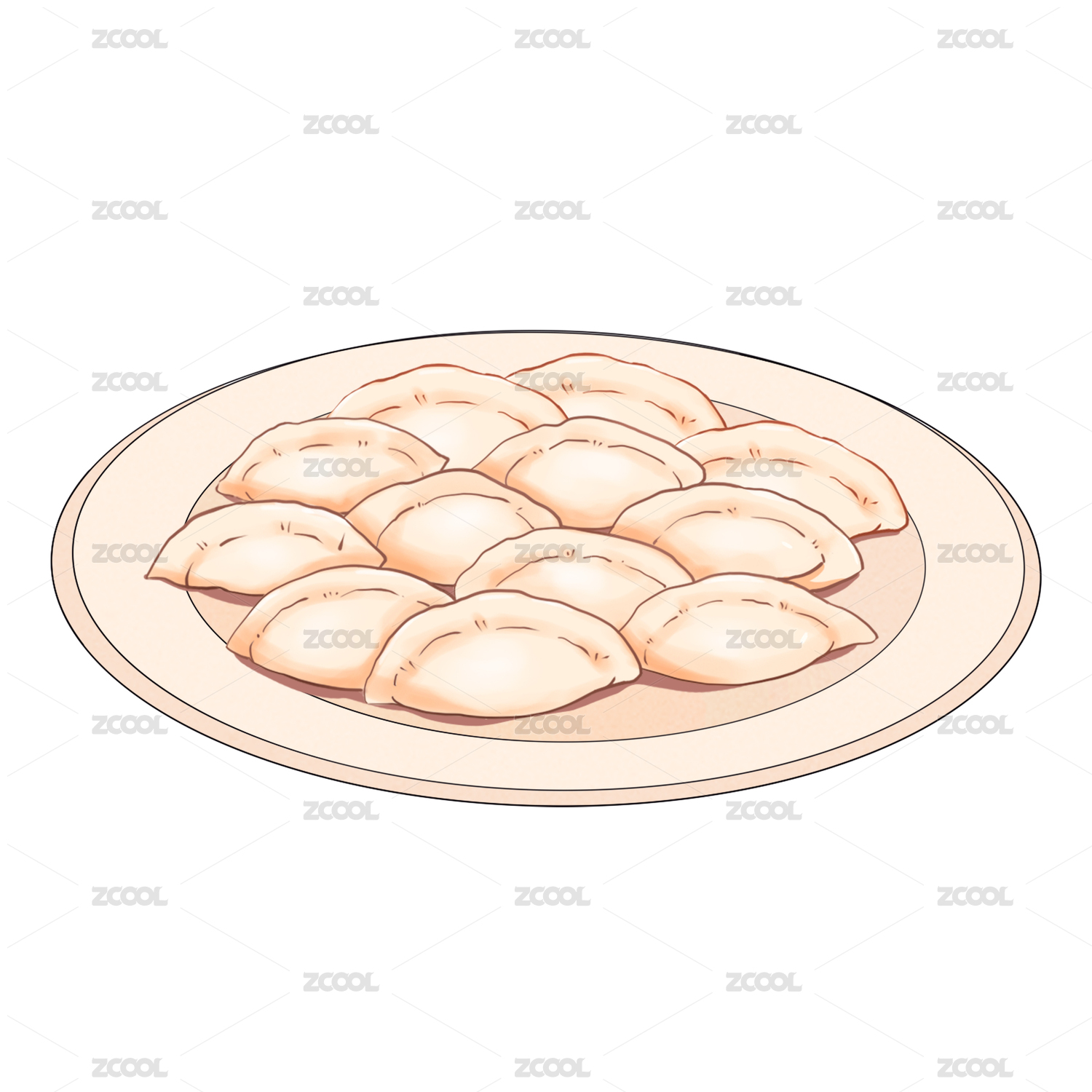 白色水彩写实冬至汤圆一盘水饺饺子与一叠
