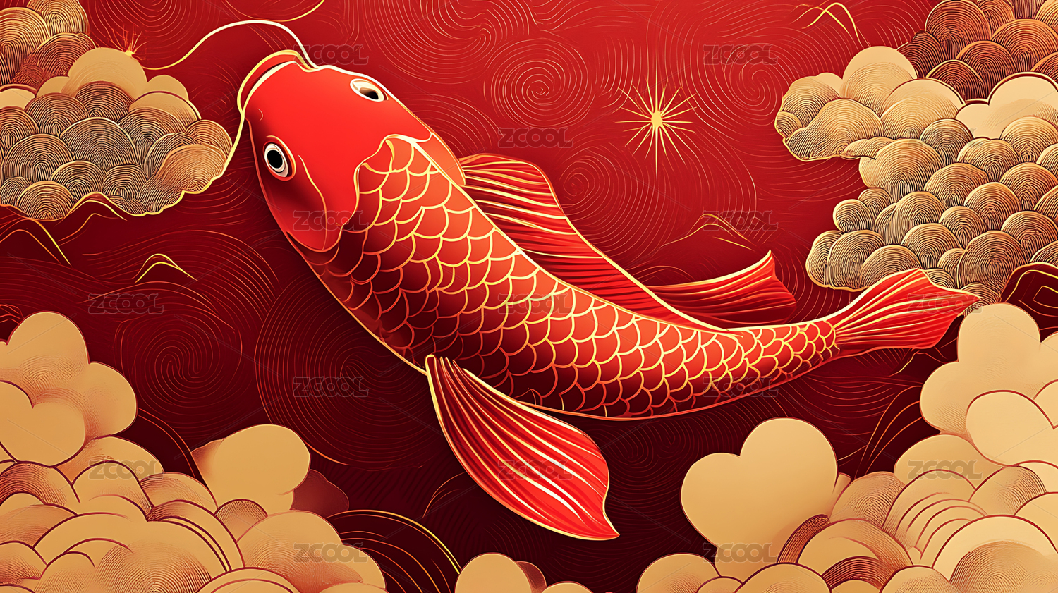 锦鲤,鲤鱼,祥云,荷叶,海浪,钱币,国潮,中国风,矢量,跳跃