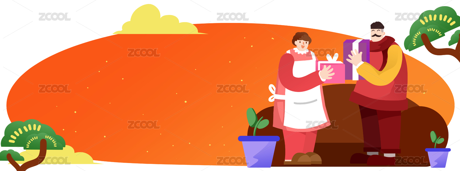 卡通手绘新年过节送父母礼物孝心温馨插画